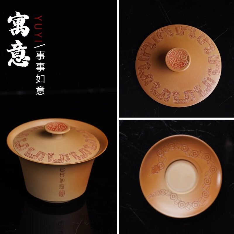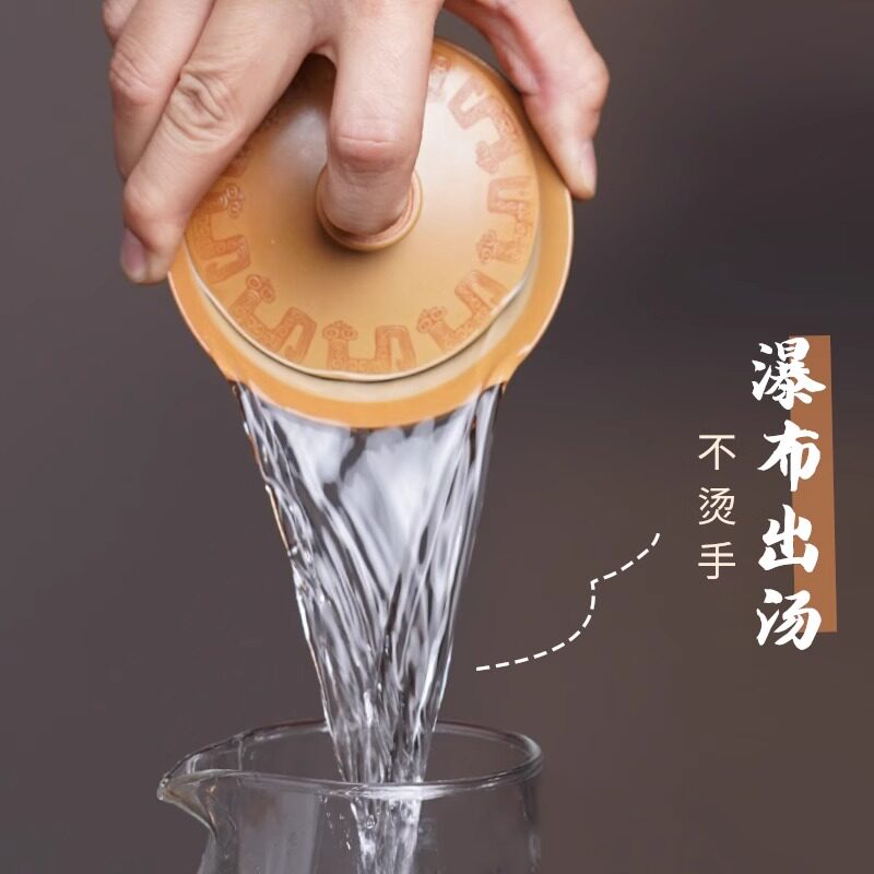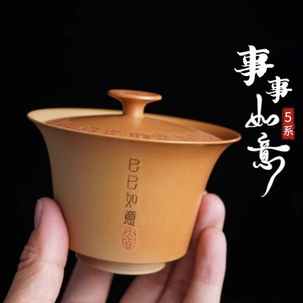 建水紫陶柴烧盖碗高档茶杯三才陶瓷家用不烫手悬停茶杯中式茶具