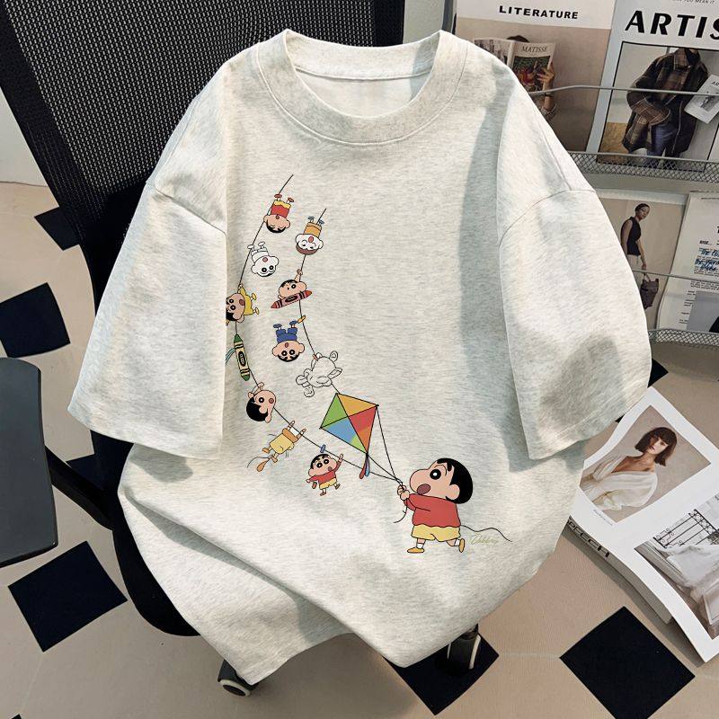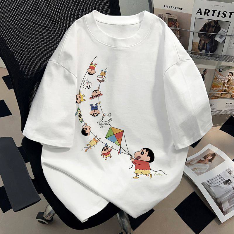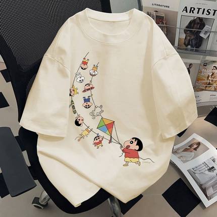 重磅纯棉港风休闲卡通蜡笔小新短袖T恤情侣款夏季宽松ins上衣男女