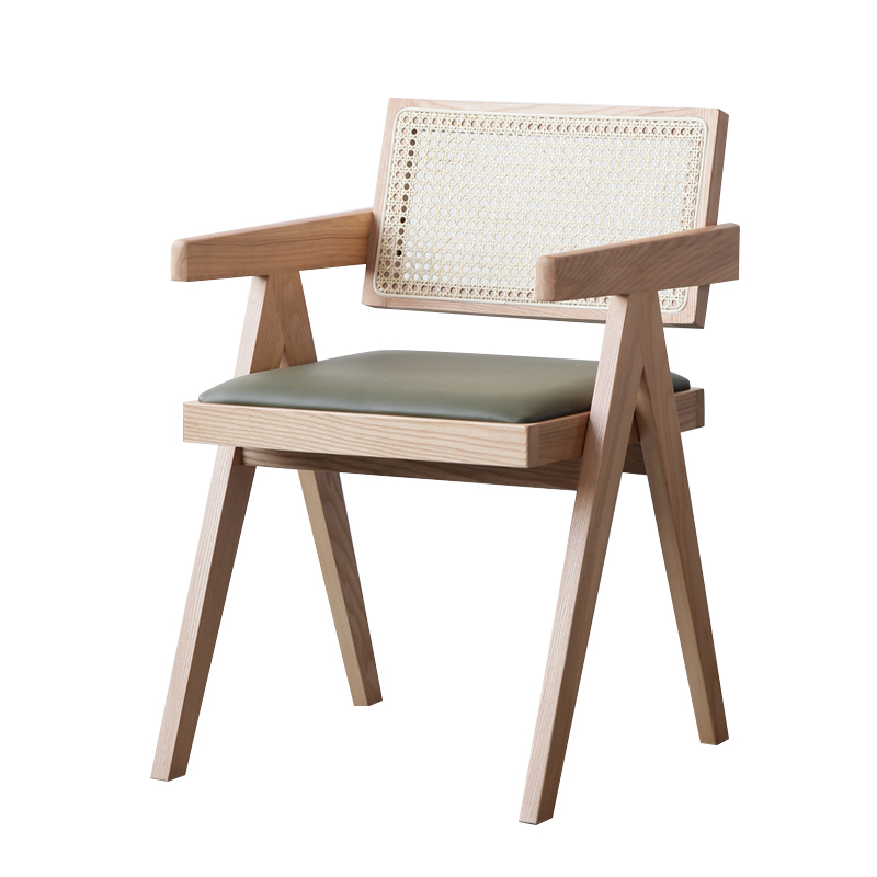 昌迪加尔椅子家用藤编餐椅实木北欧原木风民宿靠背网红侘寂风餐椅