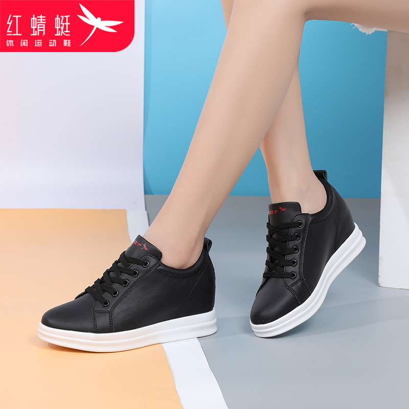 红蜻蜓女鞋内增高真皮舒适运动休闲鞋女春季新款简约百搭厚底板鞋