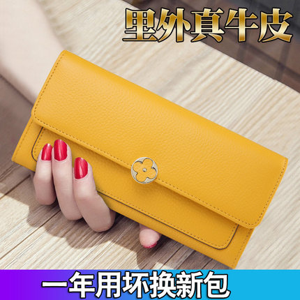2025秋冬新款黄色招财真皮长款钱包女时尚四叶草软牛皮钱夹放手机