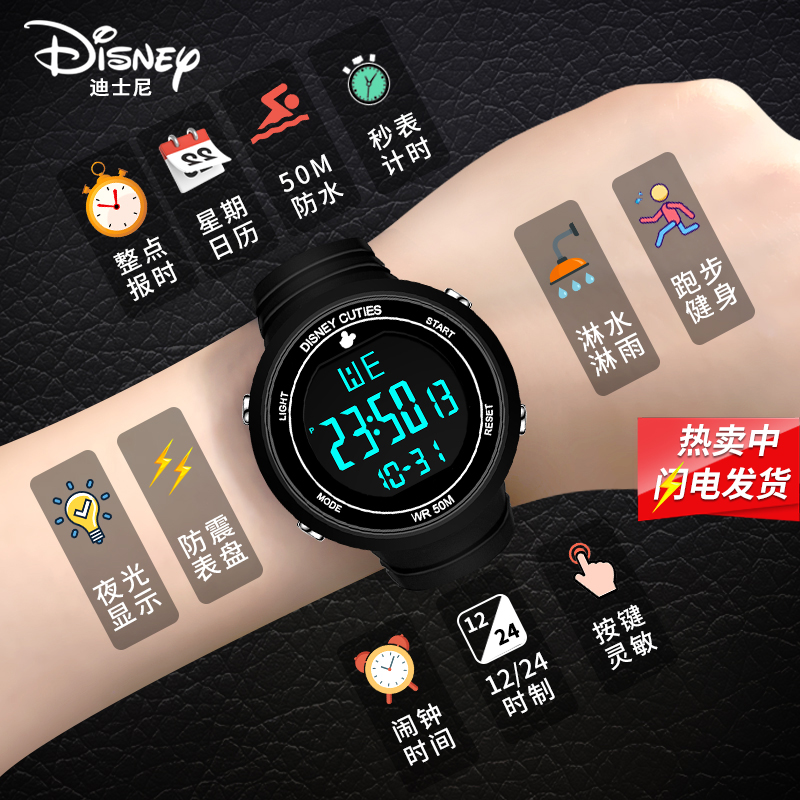 迪士尼电子手表男款学生初中生初高中儿童防水青少年男孩运动男生