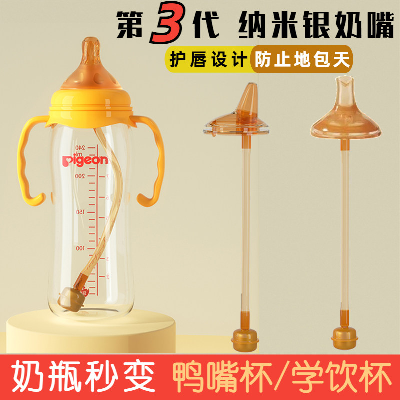 适配贝亲奶瓶吸管配件鸭嘴奶嘴重力球宽口径学饮杯吸嘴替换头通用