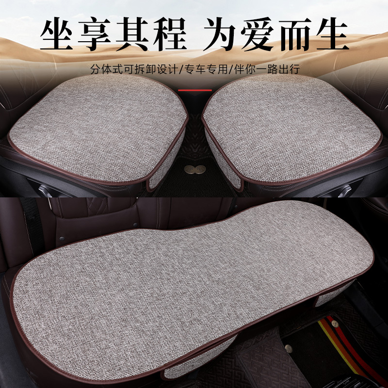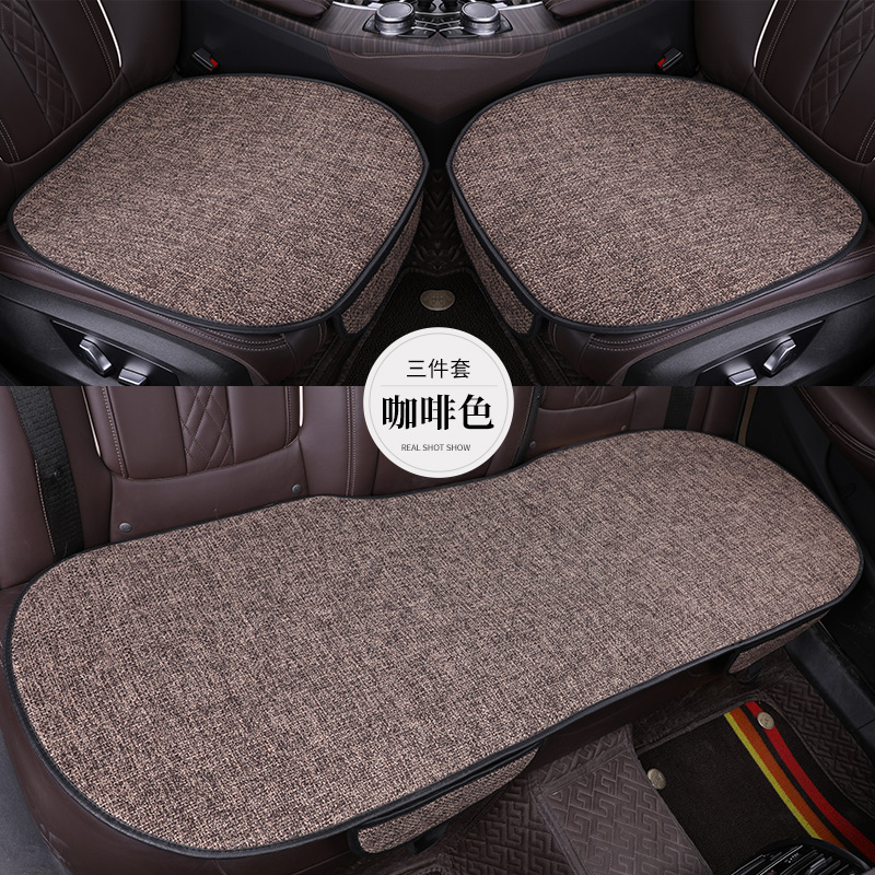 汽车坐垫三件套四季通用单片亚麻无靠背车内座垫后排座套半包座椅