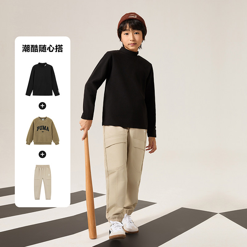 PUMA彪马儿童长袖T恤新款秋装男女孩半高领内搭上衣保暖打底衫潮t