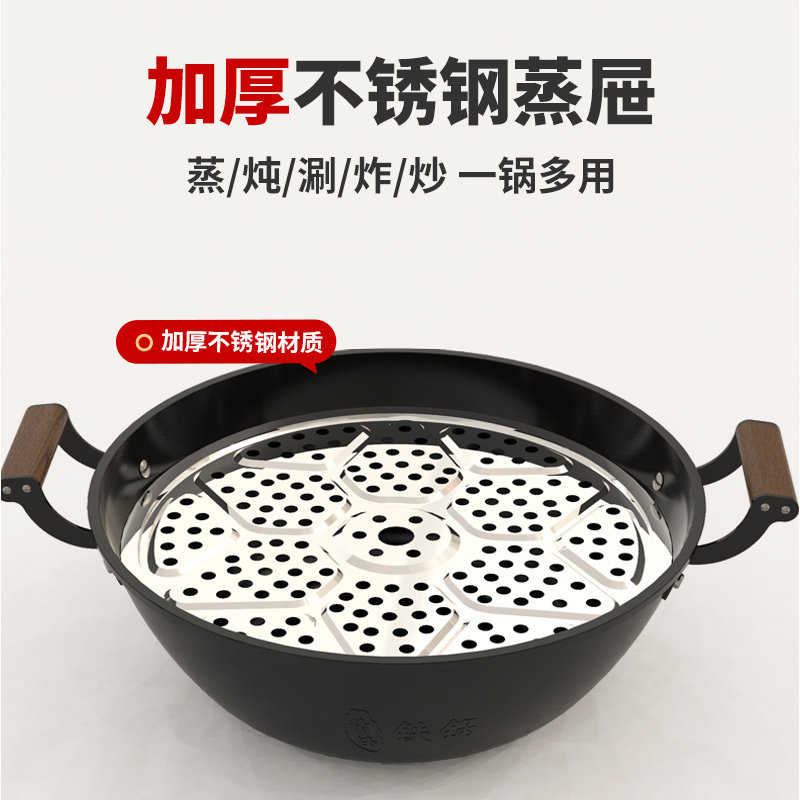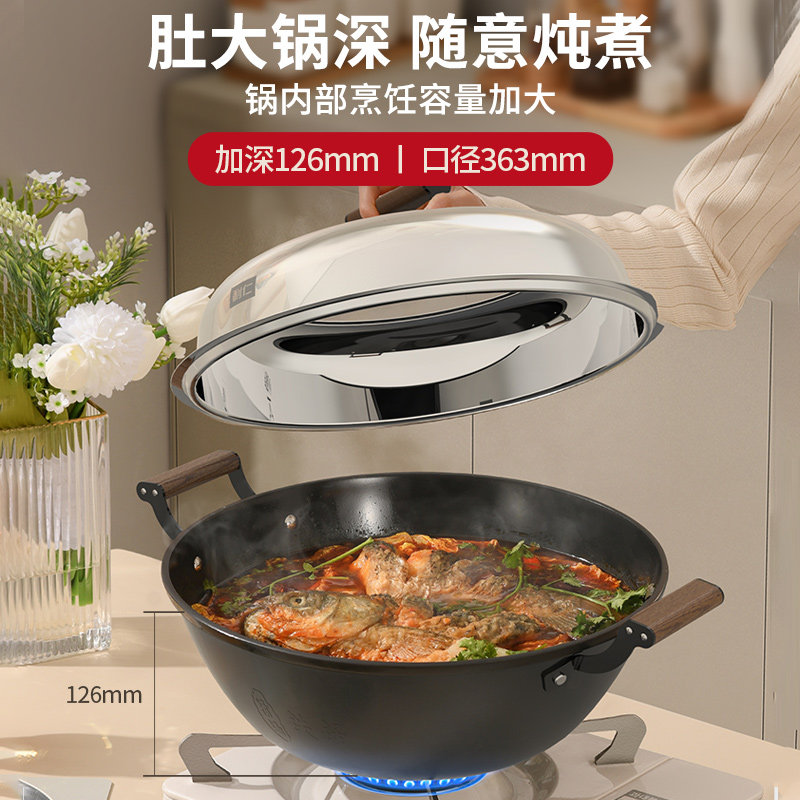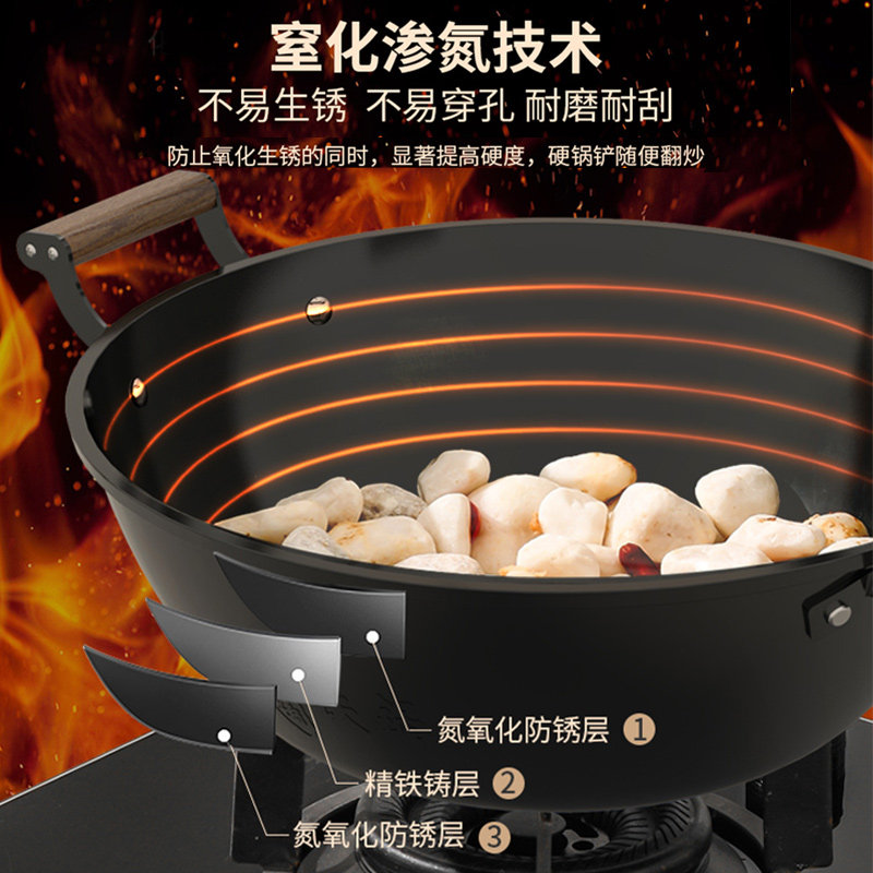 利仁炒锅双耳炖锅铁锅老式铸铁锅煤气灶电磁炉炒菜锅家用不粘锅