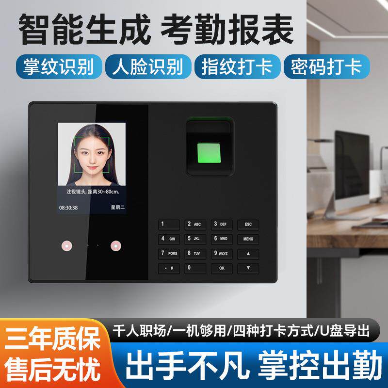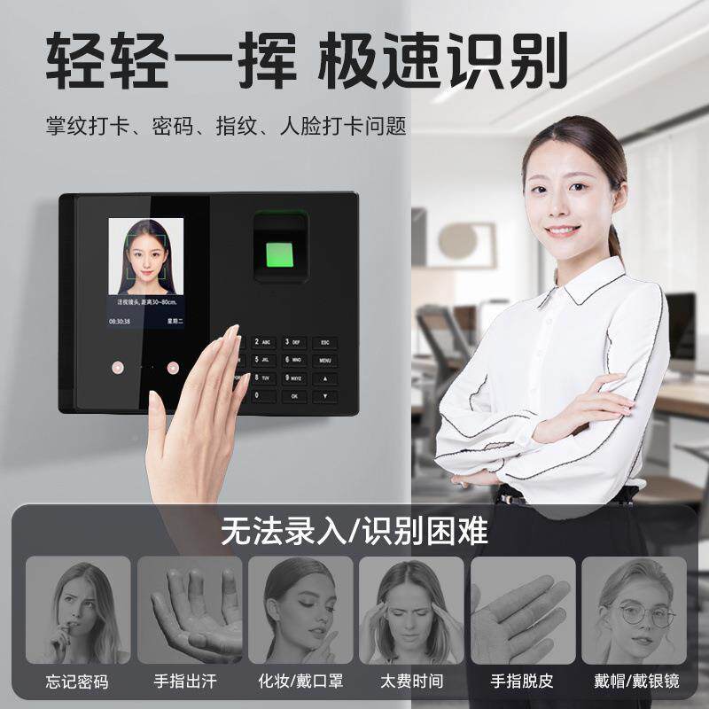 掌纹人脸打卡考勤机全易自签动指纹打机卡简企业工地(指纹+员工