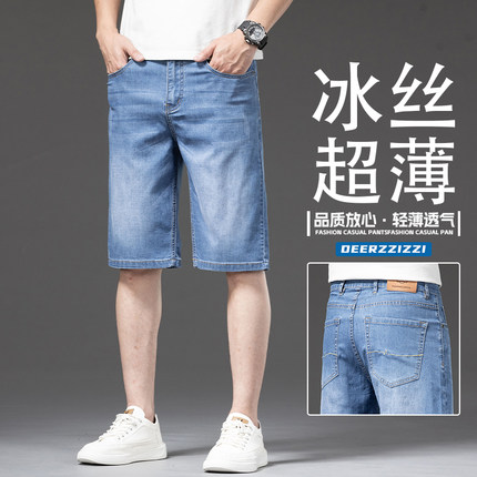 天丝牛仔短裤男士夏季冰丝超薄款2024新款宽松五分裤夏天中裤子男