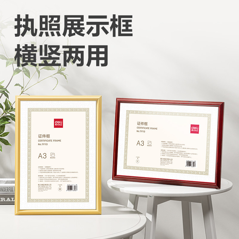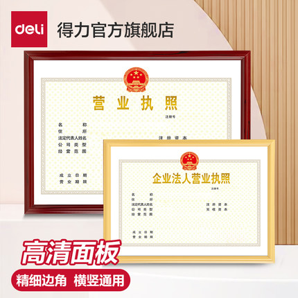 得力执照框工商营业执照框卫生许可证正副本证件展示相框执照框架