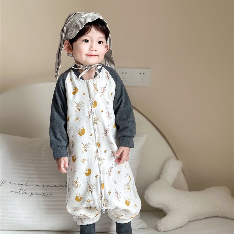 M 六层婴儿睡袋春秋宝宝可包脚竹棉纱布分腿防踢被儿童安睡神器