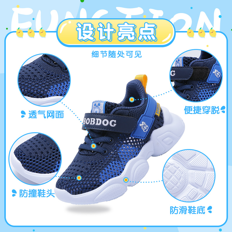 巴布豆童鞋男童鞋子透气网面2025夏季新款休闲儿童网鞋镂空运动鞋