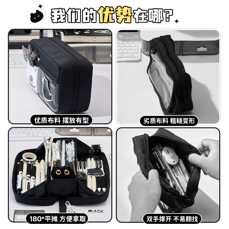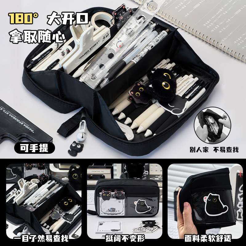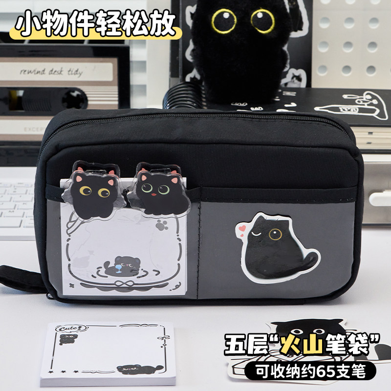 小黑猫火山笔袋高颜值ins风女生2025新款大容量小学生男孩女孩超火简约文具袋文具盒儿童铅笔盒小众不撞款