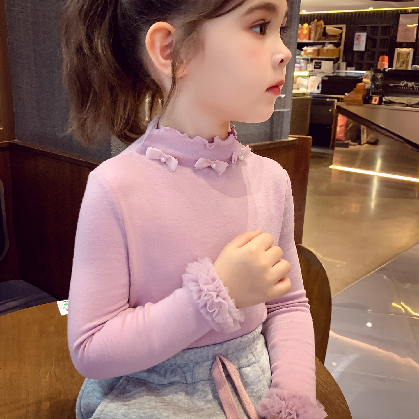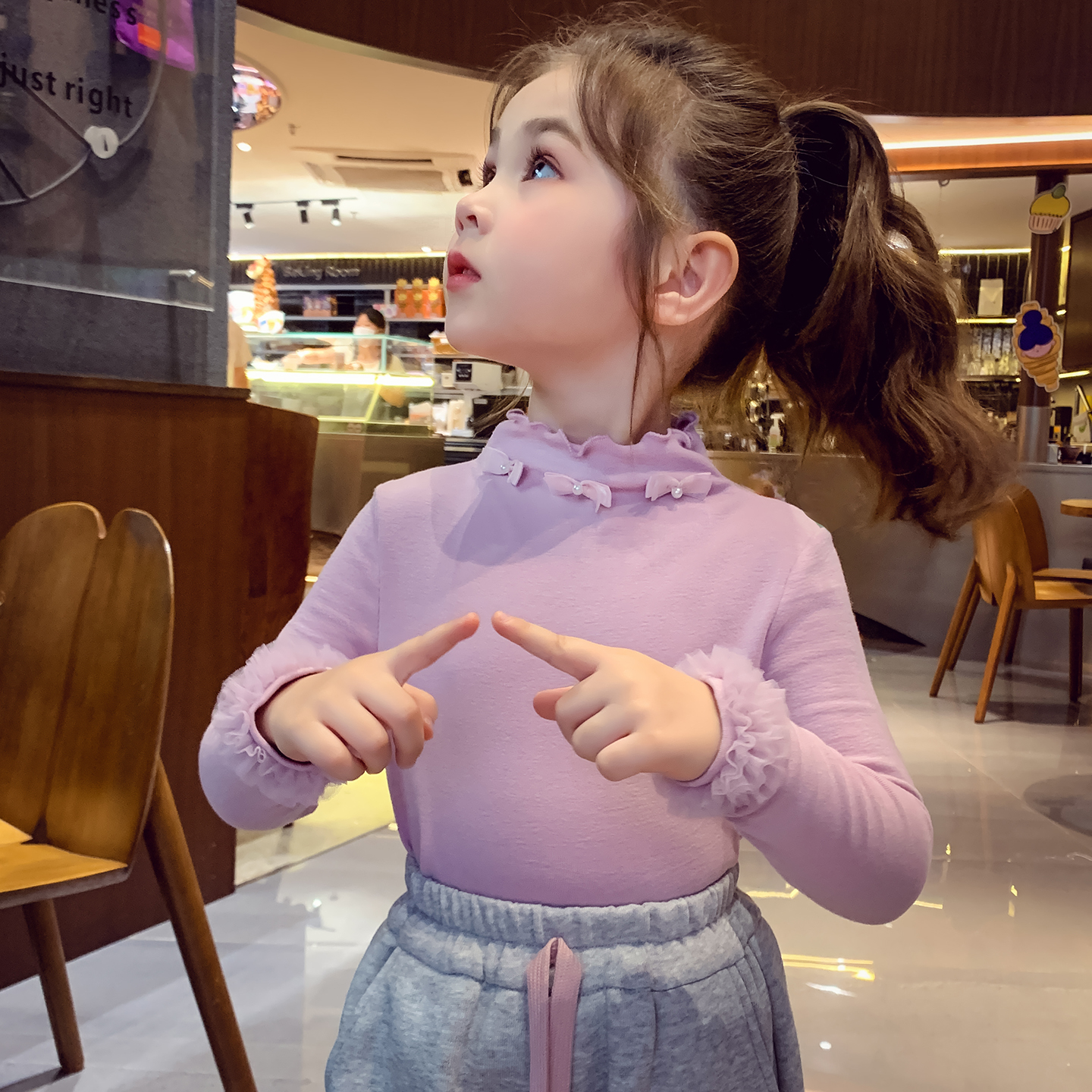 米米哈罗女童打底衫秋2025新款儿童纯色内搭上衣女孩高领长袖T恤