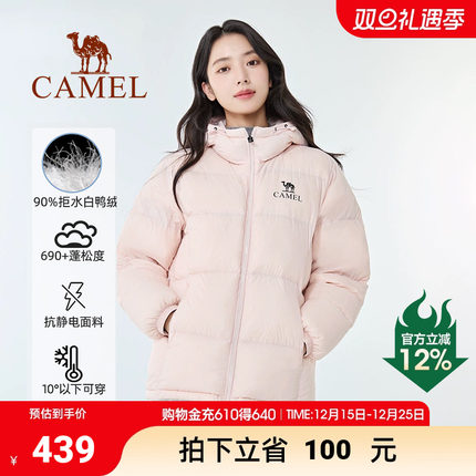 【黑钻pro拒水绒|银离子升温】骆驼户外羽绒服防风保暖情侣面包服