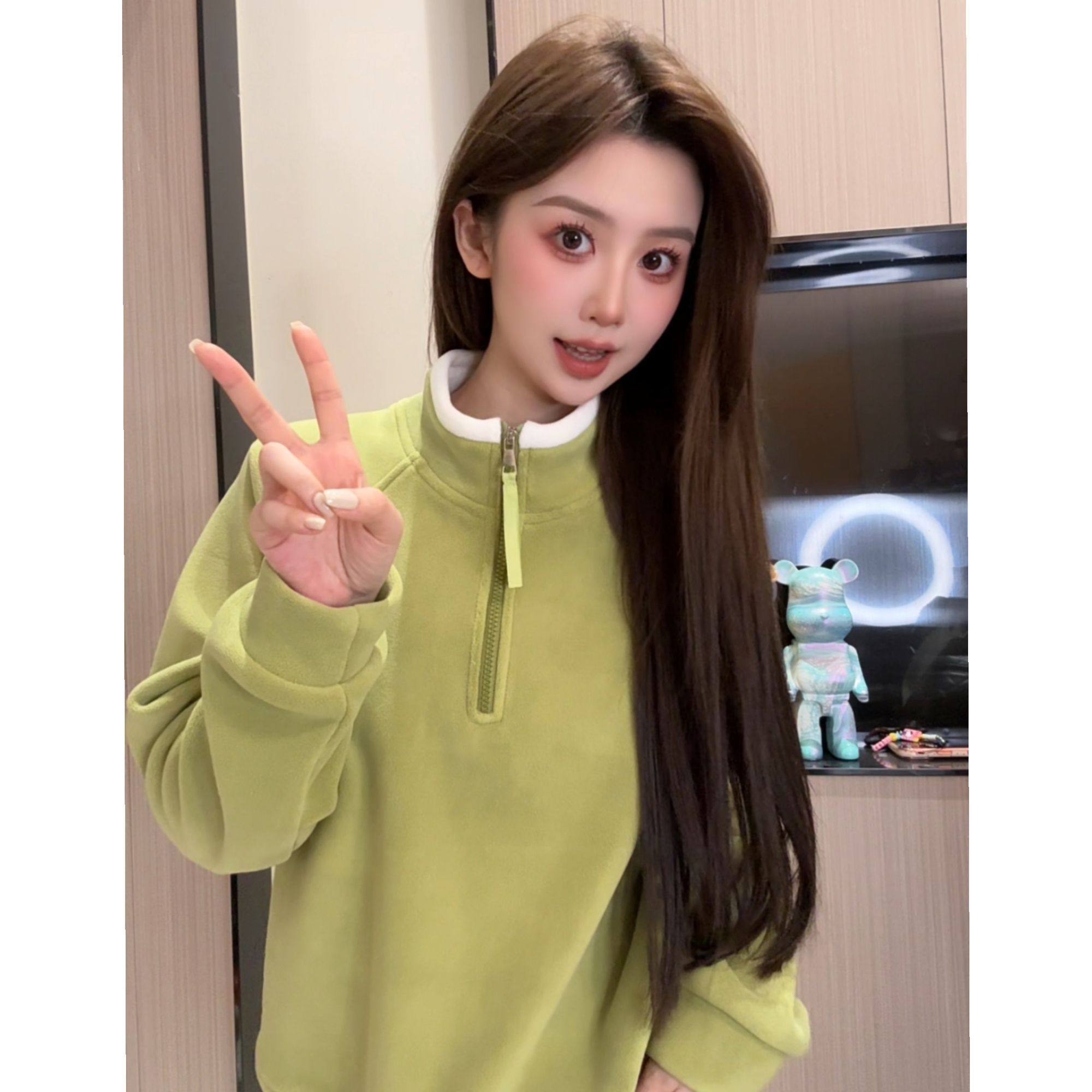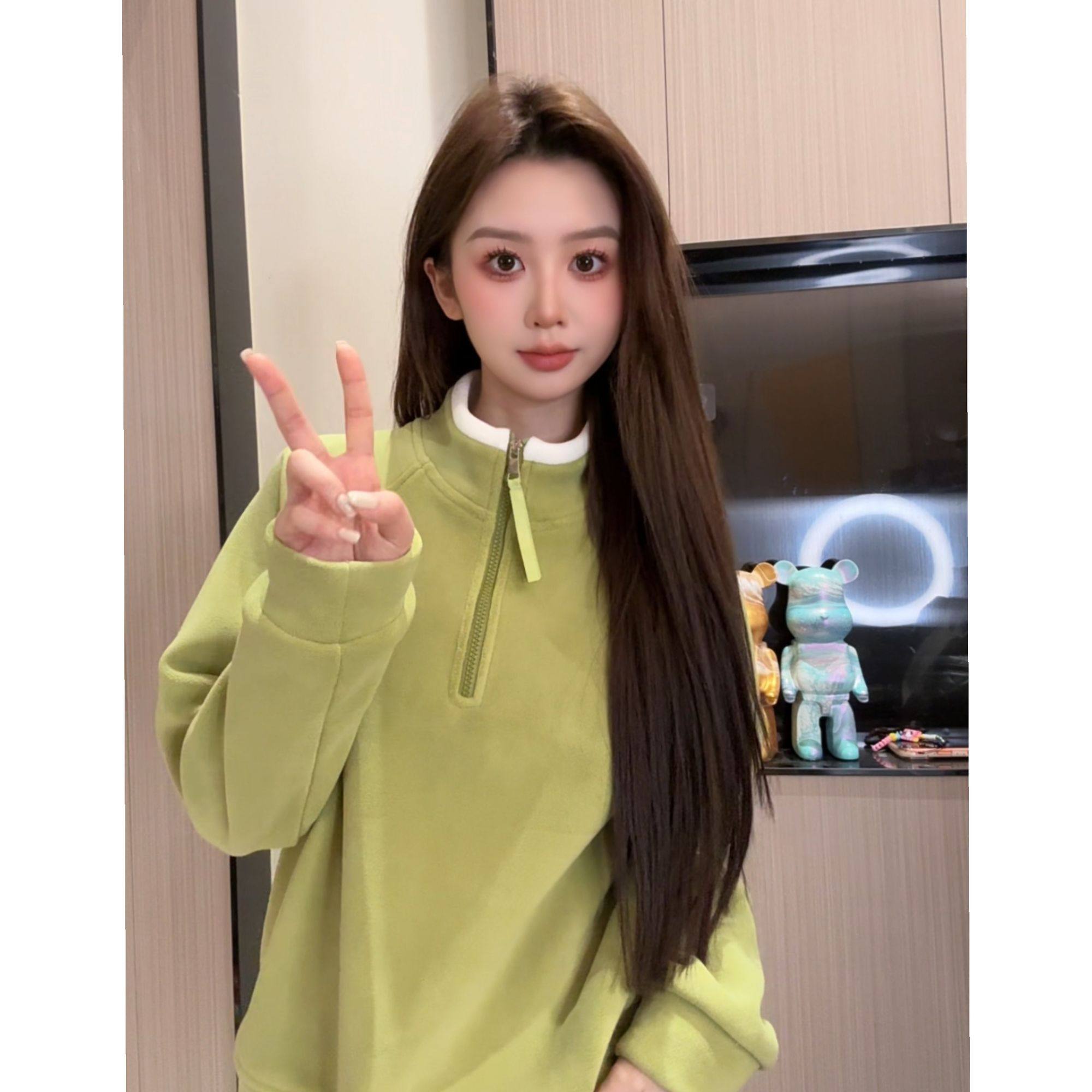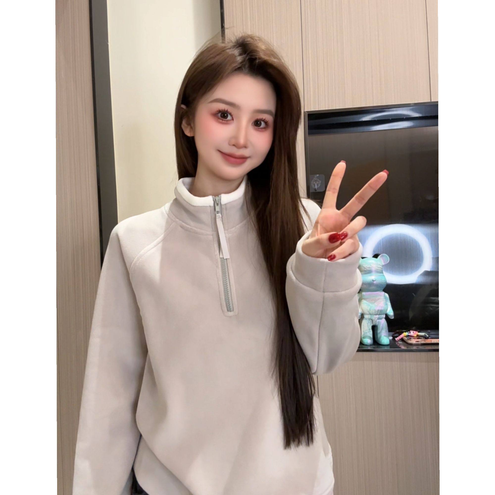 2025年冬季百搭显瘦防风保暖加绒加厚半拉链小立领卫衣女宽松内搭