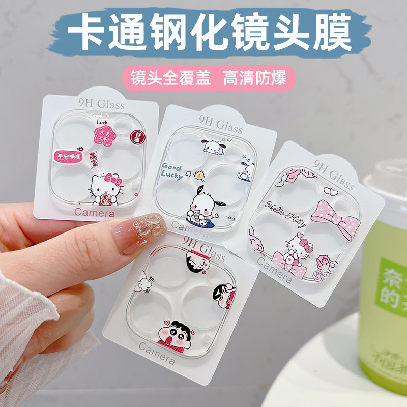 适用苹果16promax卡通透明镜头膜iPhone14手机镜头贴13 pro可爱钢化膜12mini全覆盖11后摄像贴膜15plus防爆膜