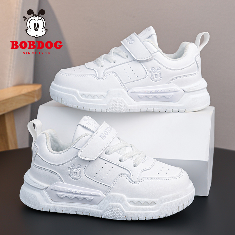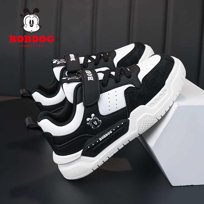 巴布豆男童运动鞋2025春秋季新款儿童皮面防水小学生百搭跑步鞋子