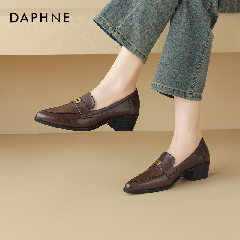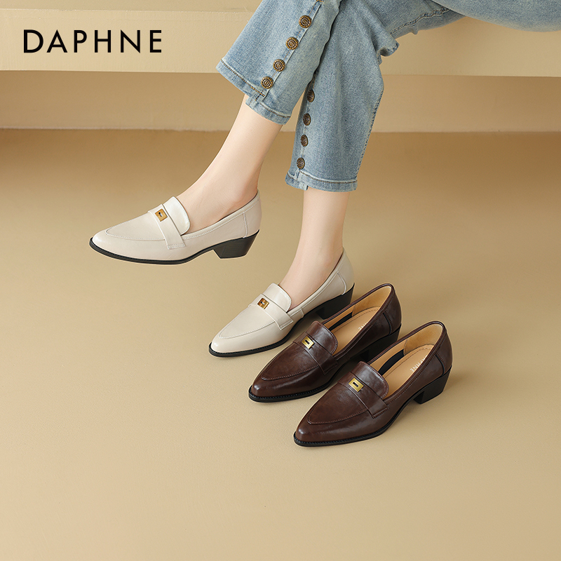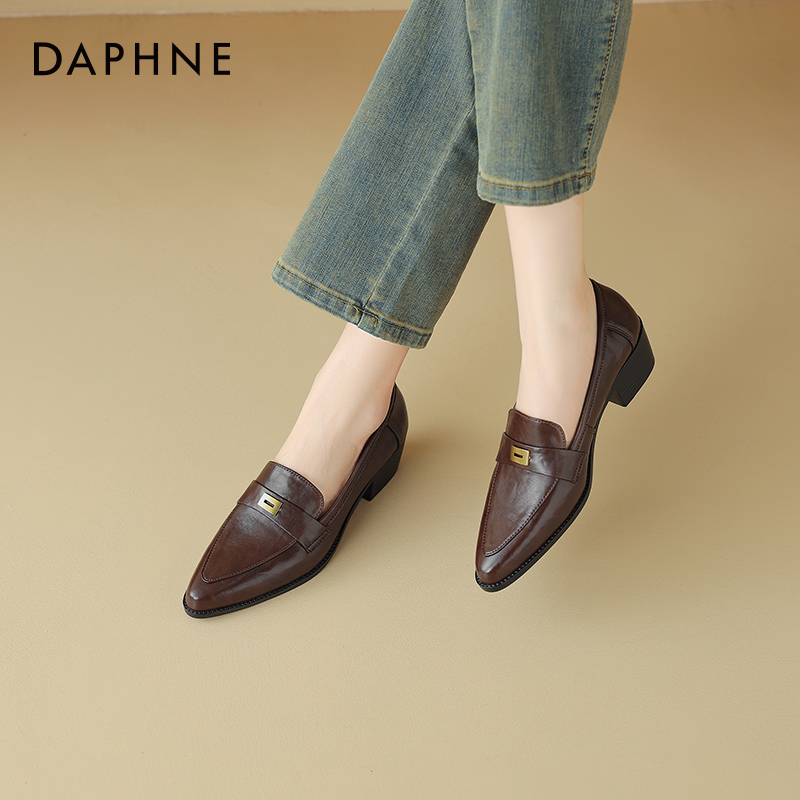 达芙妮英伦风乐福鞋气质尖头皮鞋