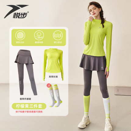 运动套装女跑步健身夏季冰丝黄色防晒上衣晨跑速干羽毛球服瑜伽服