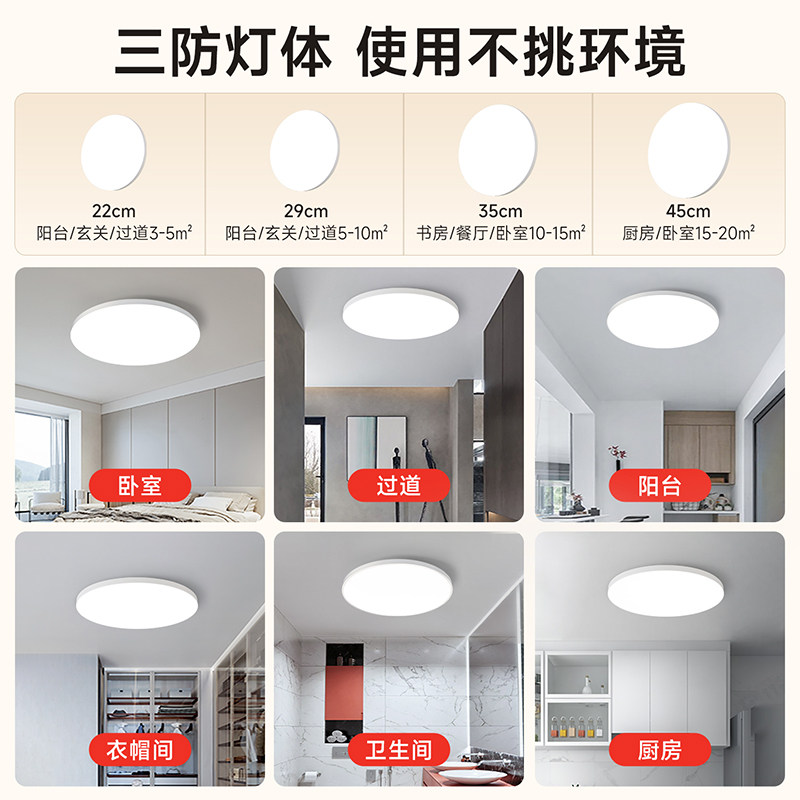 全光谱led三防吸顶灯超薄圆形客厅卧室卫生间防水浴室厨卫走廊灯