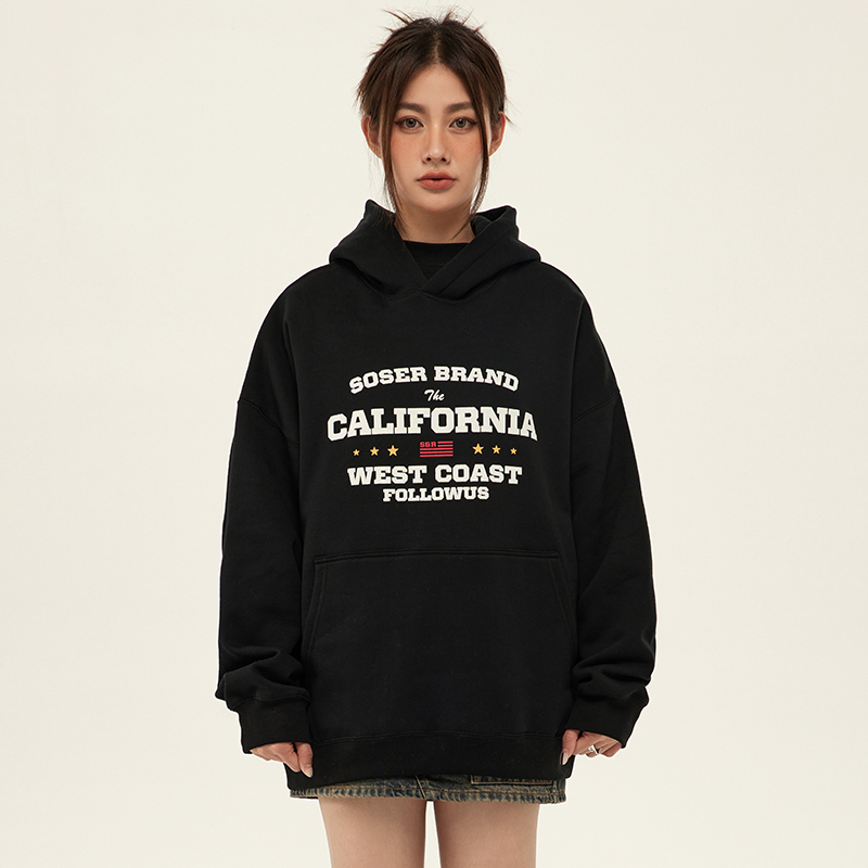 SOSER 重磅440g加绒 美式复古街头字母潮牌连帽卫衣男士女生情侣
