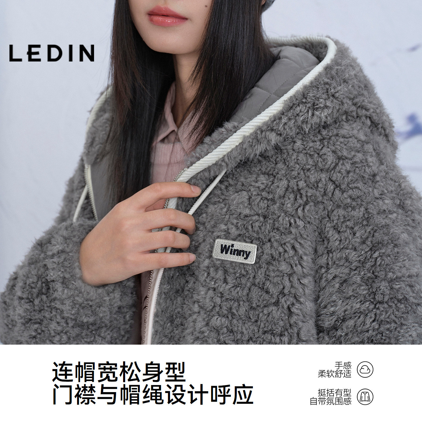 【商场同款】乐町软糯毛毛外套新款拉链连帽仿裘皮外衣C2AEF4525
