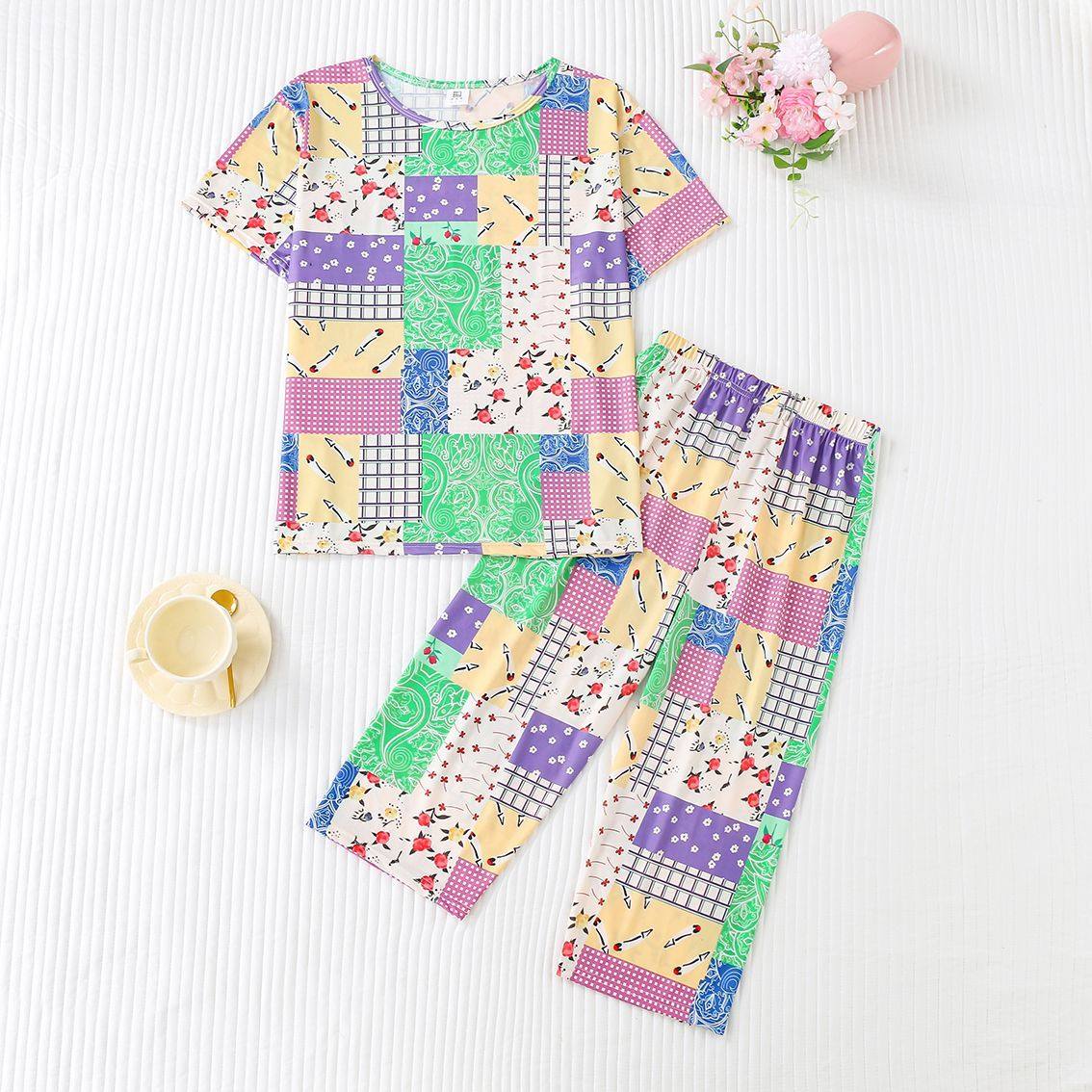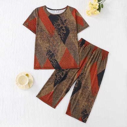 冰丝休闲两件套装女士夏季新款时尚大码中老年妈妈装短袖上衣裤子