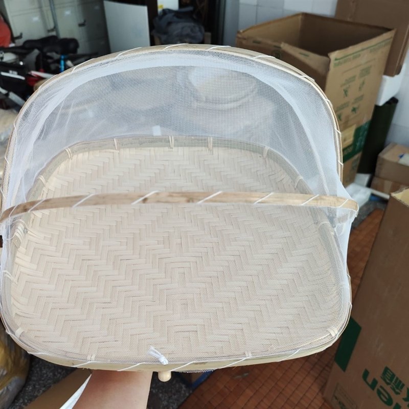 竹编圆簸箕收纳筐家用馒头筐晾晒篮防蝇防虫农家竹制品竹筛子带网