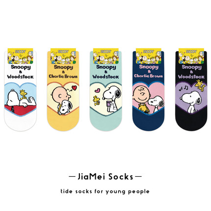 史努比袜子女韩国snoopy联名可爱卡通小狗爱心学生纯棉浅口短筒袜