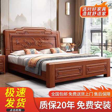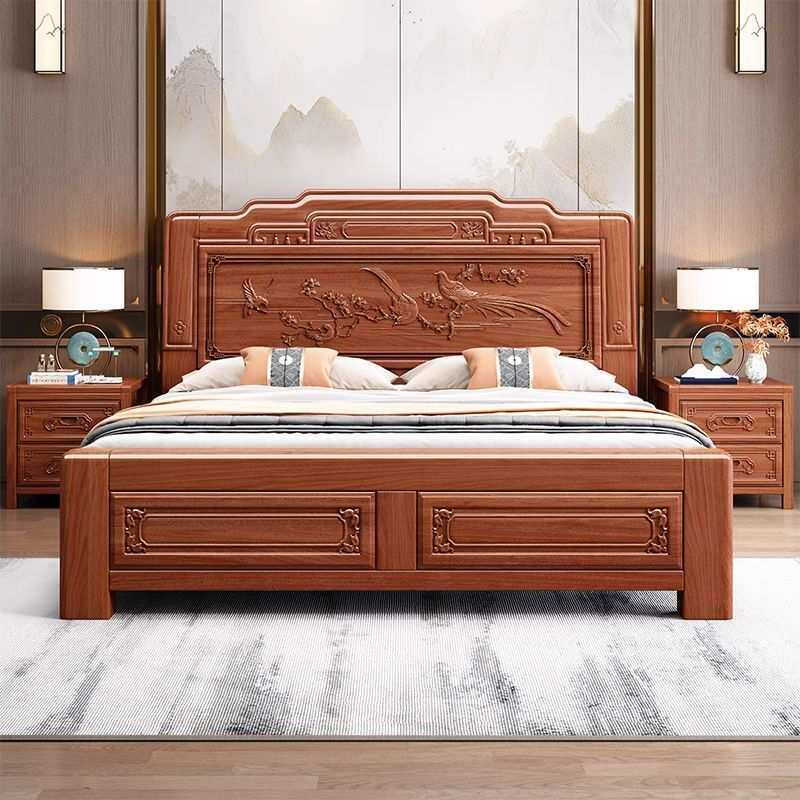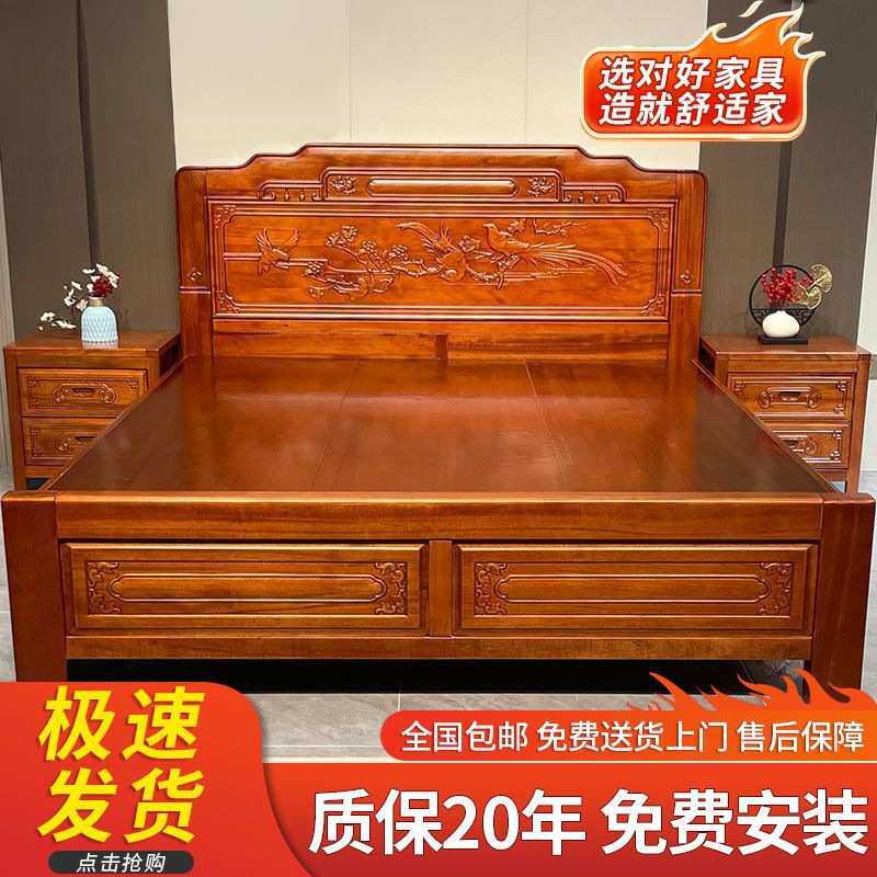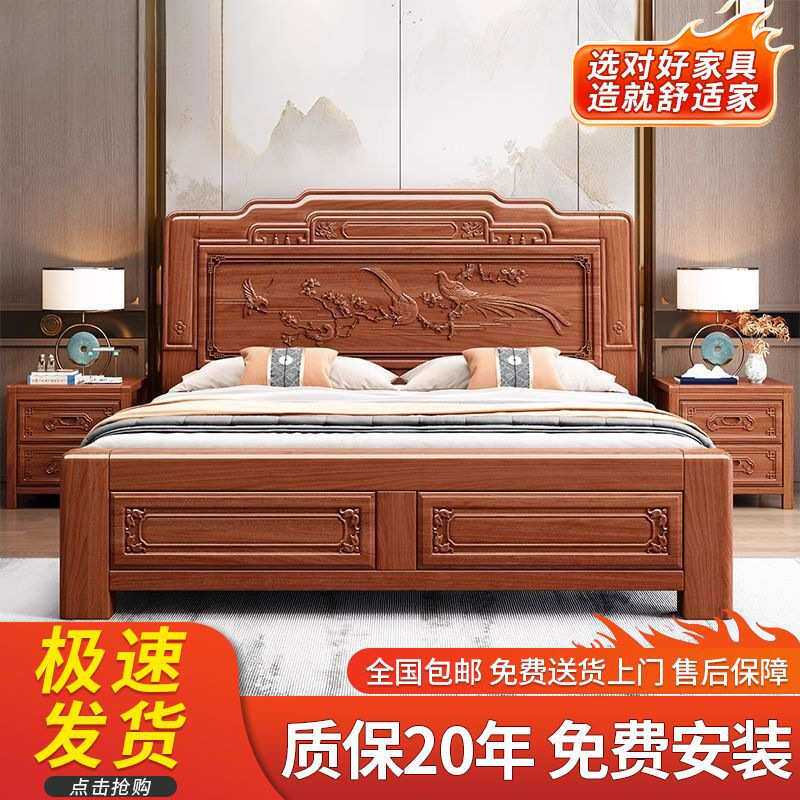 富繁金花梨木实木床加厚榫卯结构双人床卧室成套家具床+床头柜