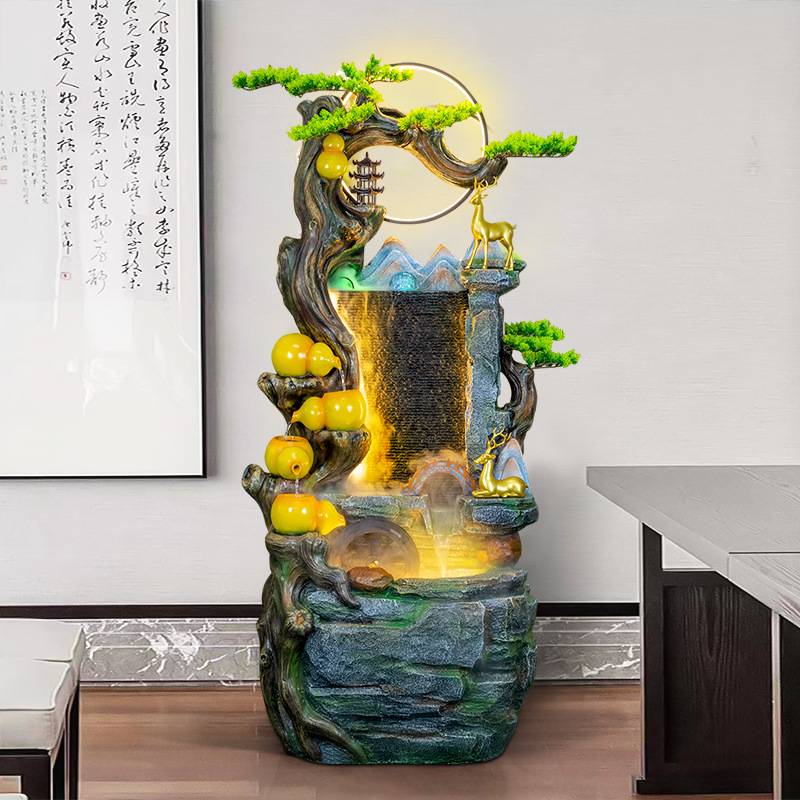 流水生财根雕葫芦假山鱼缸摆件现代客餐厅玄关落地造景装饰加湿器