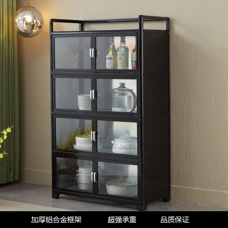 铝合金碗柜带门不锈钢碗橱柜家用多功能组装储物柜厨房置物柜橱柜