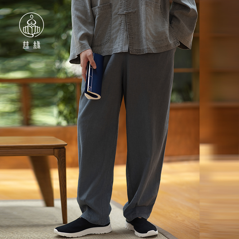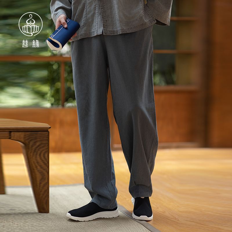 慈缘2025秋季新款男装休闲裤宽松大码禅修裤特色棉麻居士服打坐裤