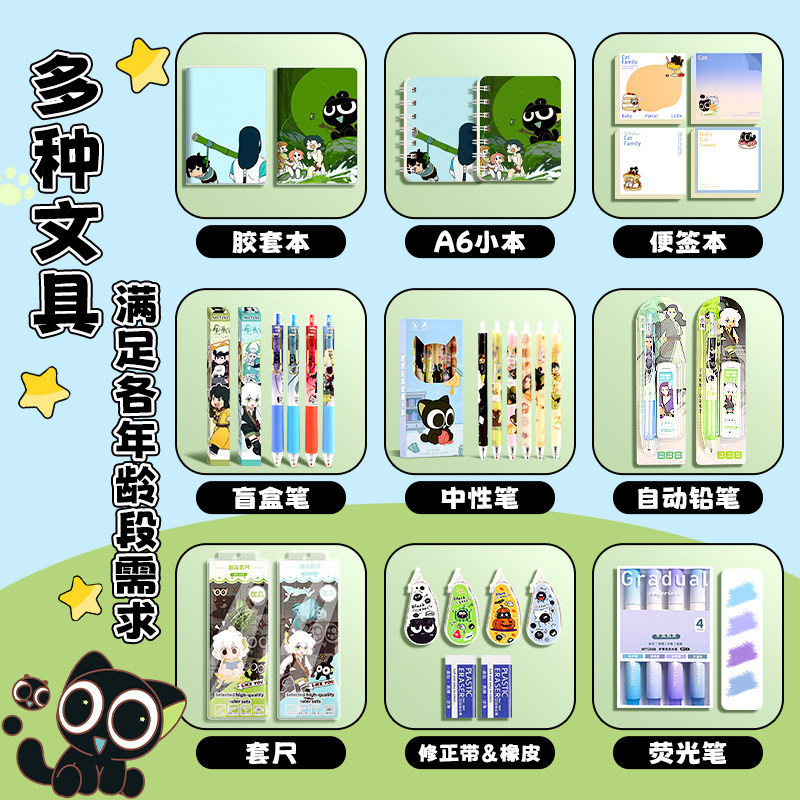 罗小黑战记周边挂件儿童生日礼物伴手礼盲盒中小学生男孩文具套装