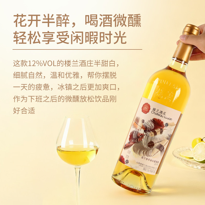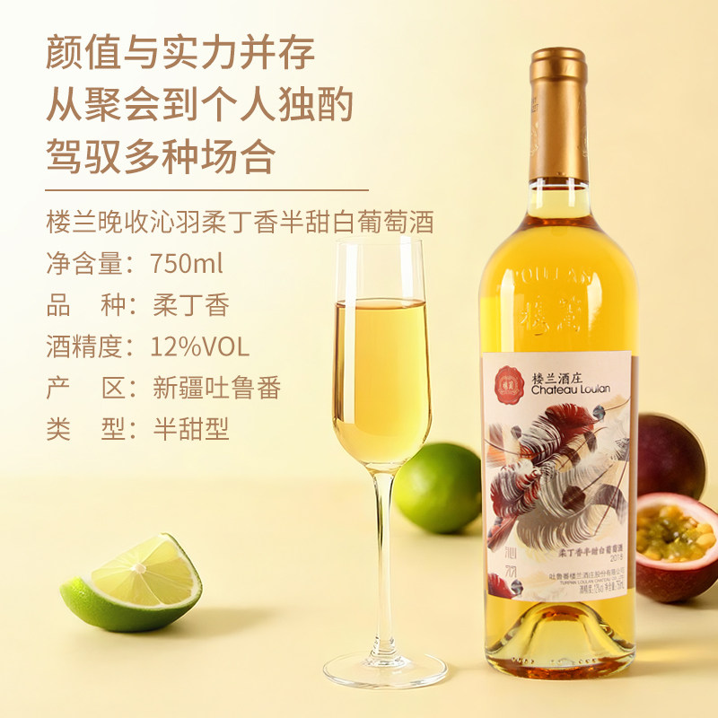 新疆楼兰晚收沁羽柔丁香半甜白葡萄酒贵腐冰酒冰镇爽口微醺六支装