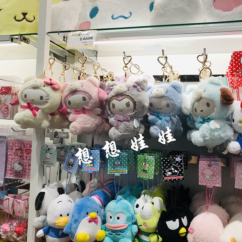现货日本三丽鸥kitty美乐蒂小熊天使爱心扣公仔钥匙扣圈挂件包挂