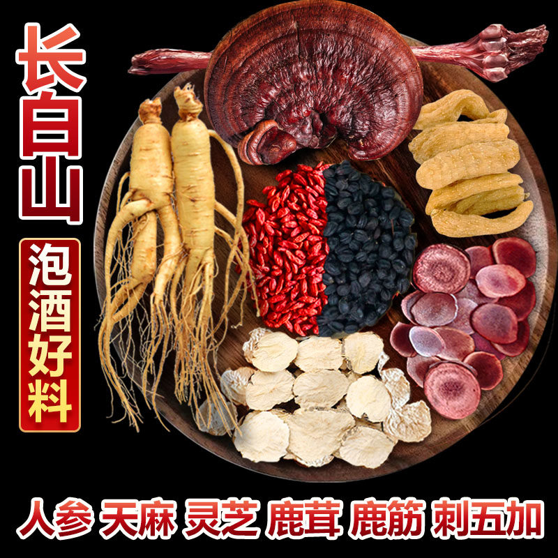 长白山鲜人参天麻鹿茸鹿筋泡酒料