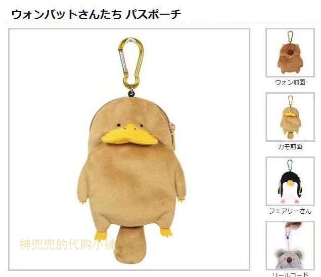 日本zakka 树袋熊家族毛绒鸭嘴兽土拨鼠零钱包挂件钥匙扣卡包