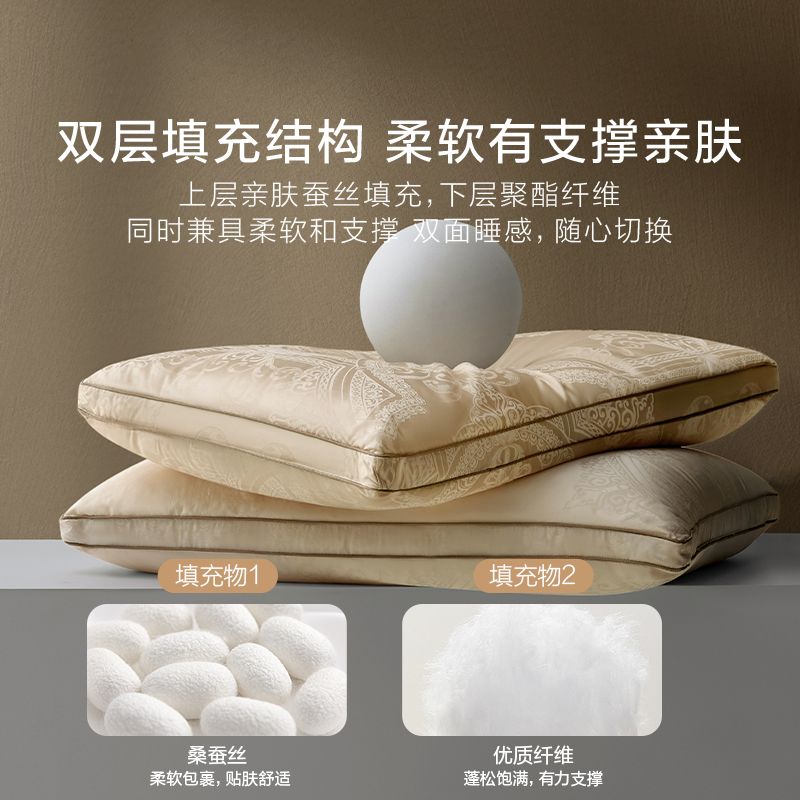 罗莱家纺枕头枕芯蚕丝枕单人家用成人枕芯亲肤蚕丝枕单/双只装