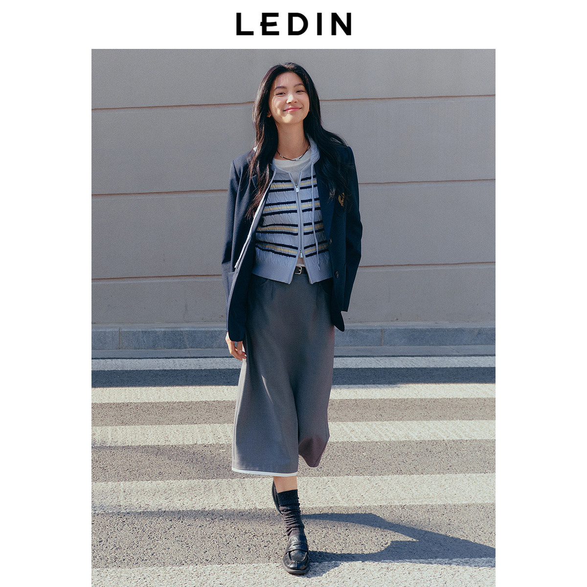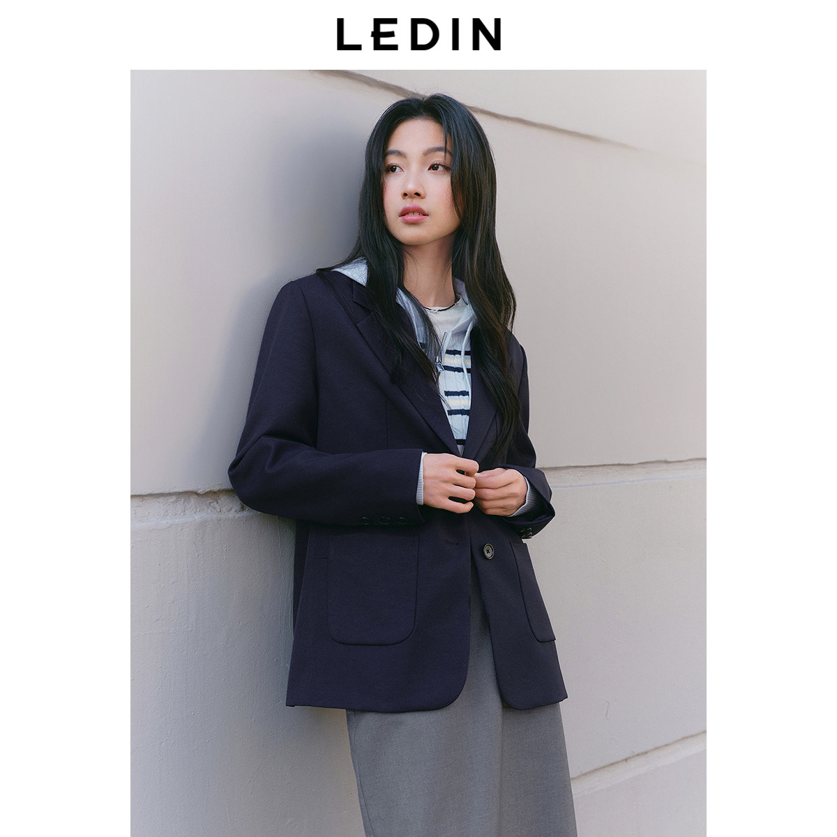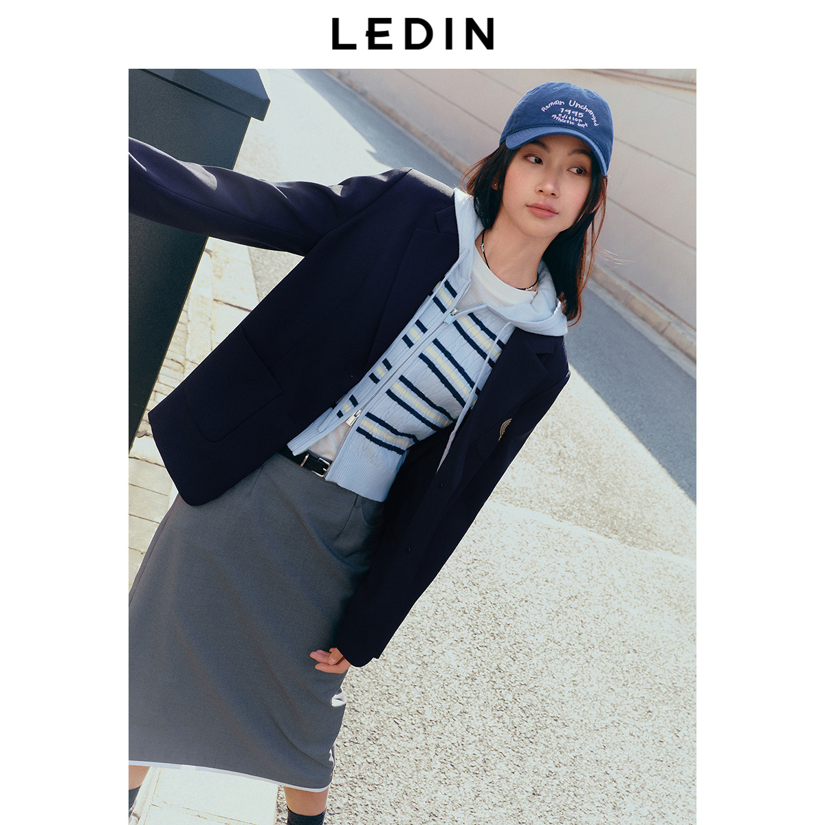 【防晒西装】乐町2025春季新款韩系学院撞色刺绣廓形正肩西服外套