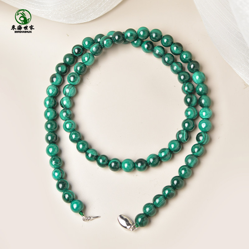 孔雀石项链女东海水晶玉石玉髓玛瑙散珠子翡翠色孔雀石锁骨链颈链