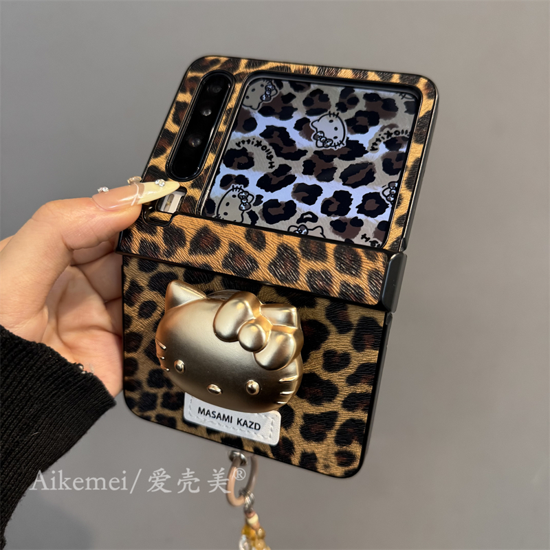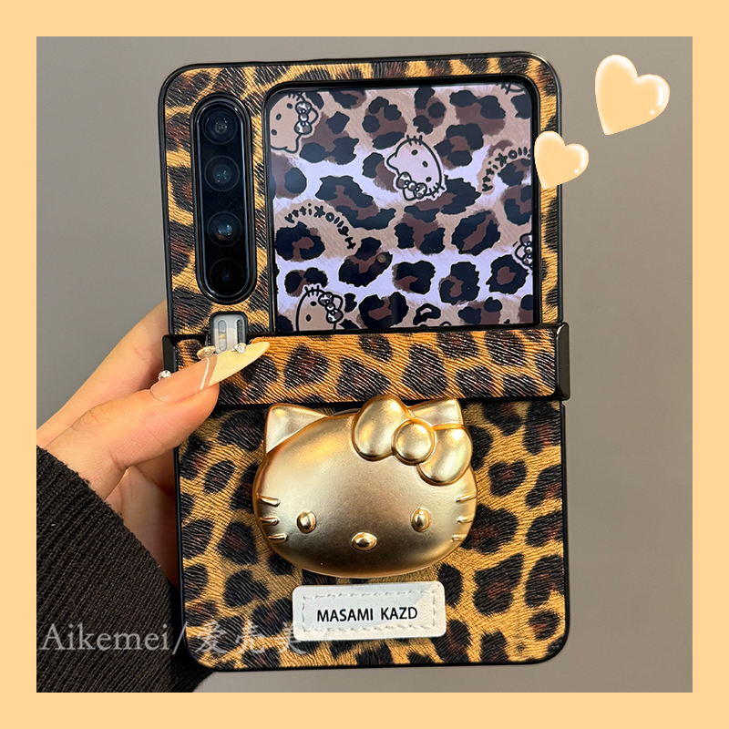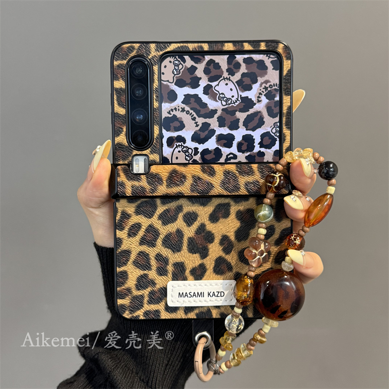 适用华为purax折叠屏手机高级感pocket2美拉德棕豹纹小米MIXFlip2中轴保护立体kt猫支架三星Zflip765挂绳防摔