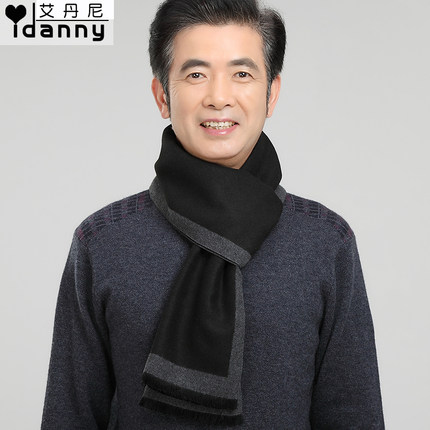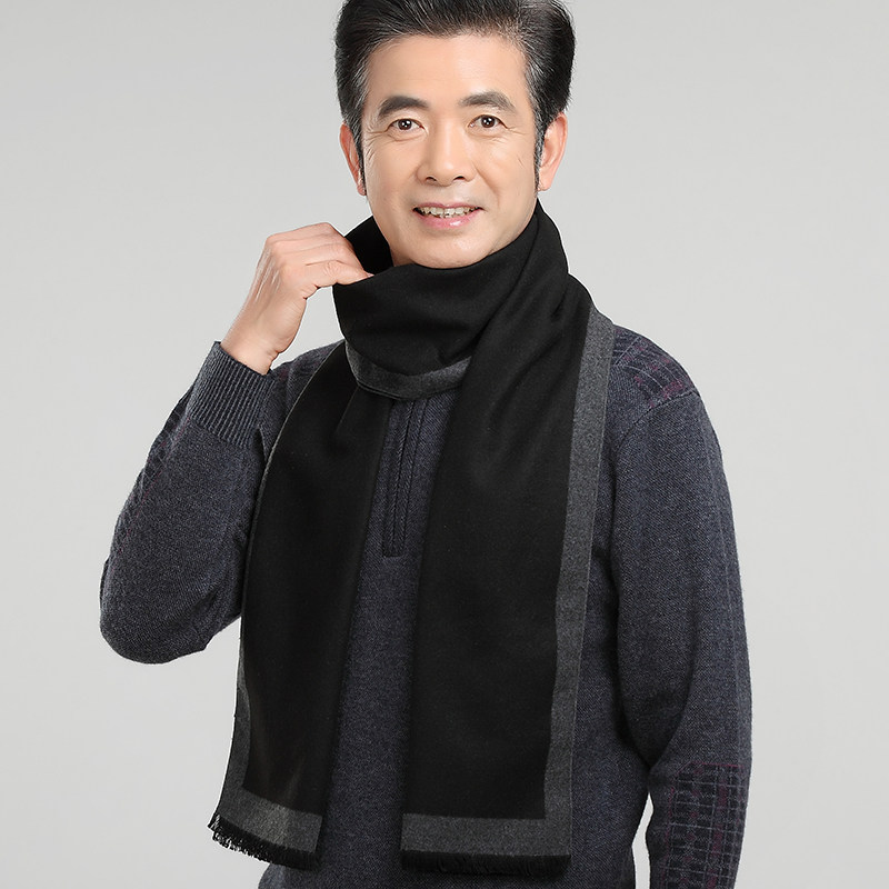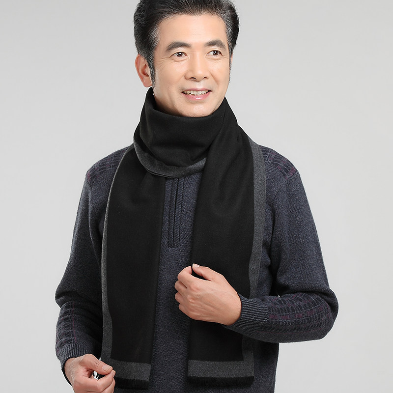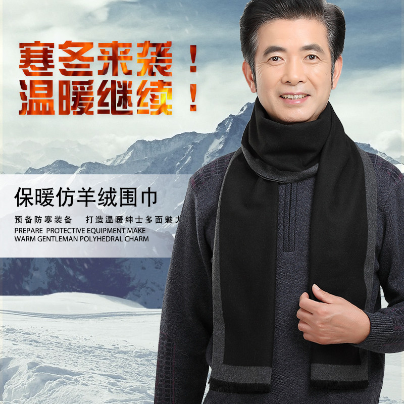 中老年男士商务围巾秋冬老年人仿羊绒围脖中年保暖老人围巾男冬季