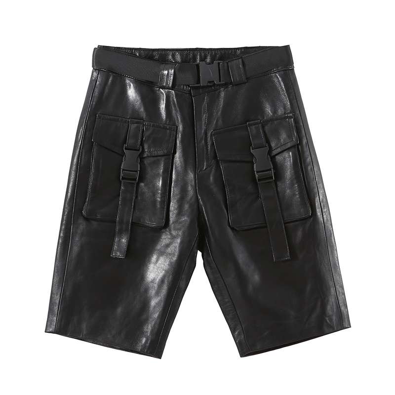 五分裤女2025秋季新款绵羊皮大口袋皮裤真皮包臀铅笔裤中腰休闲裤