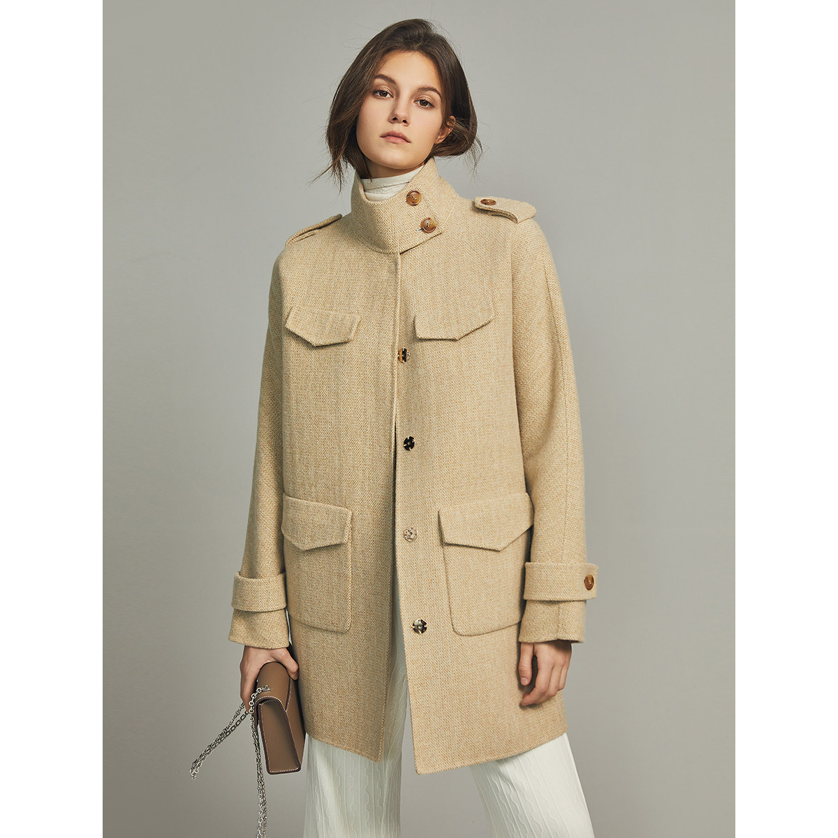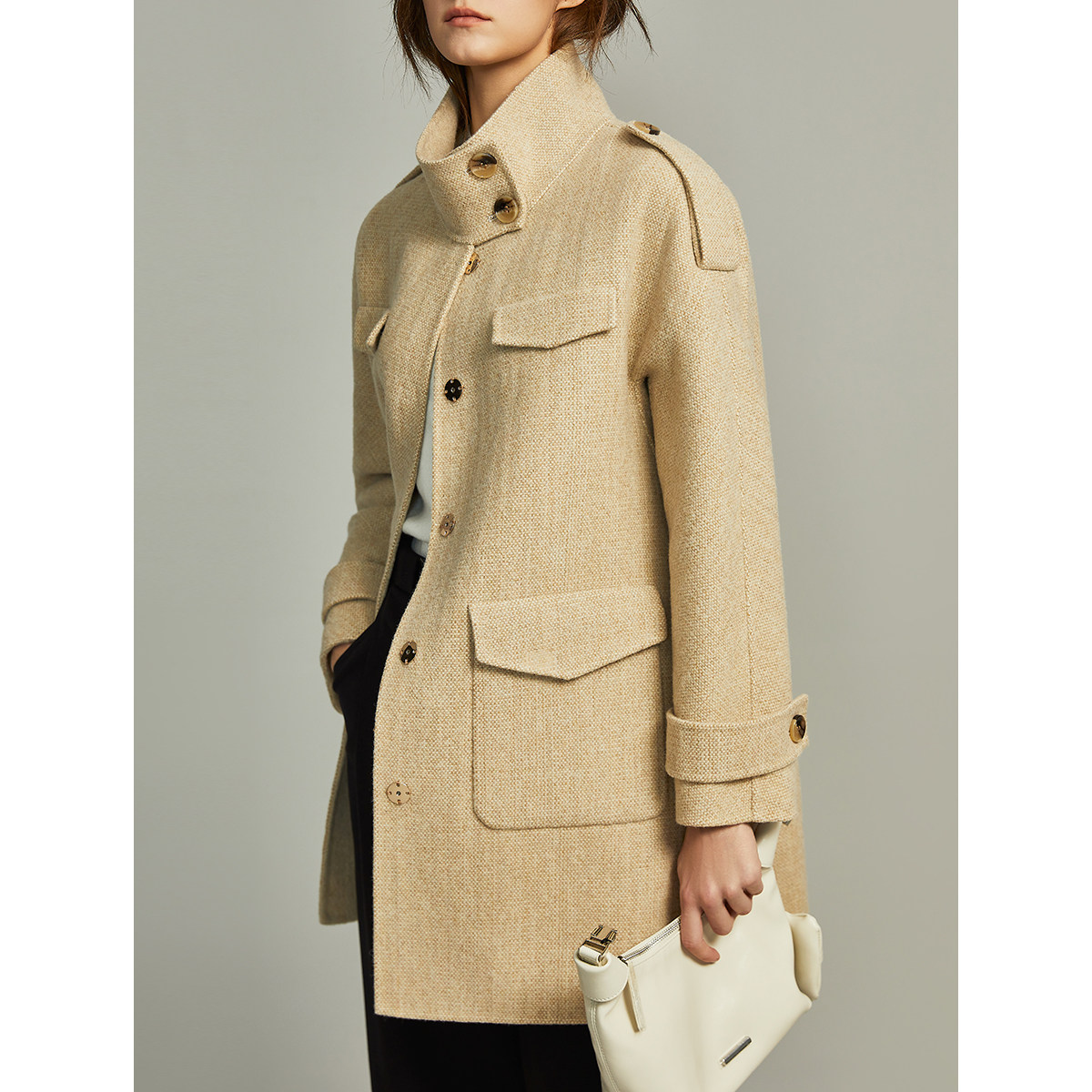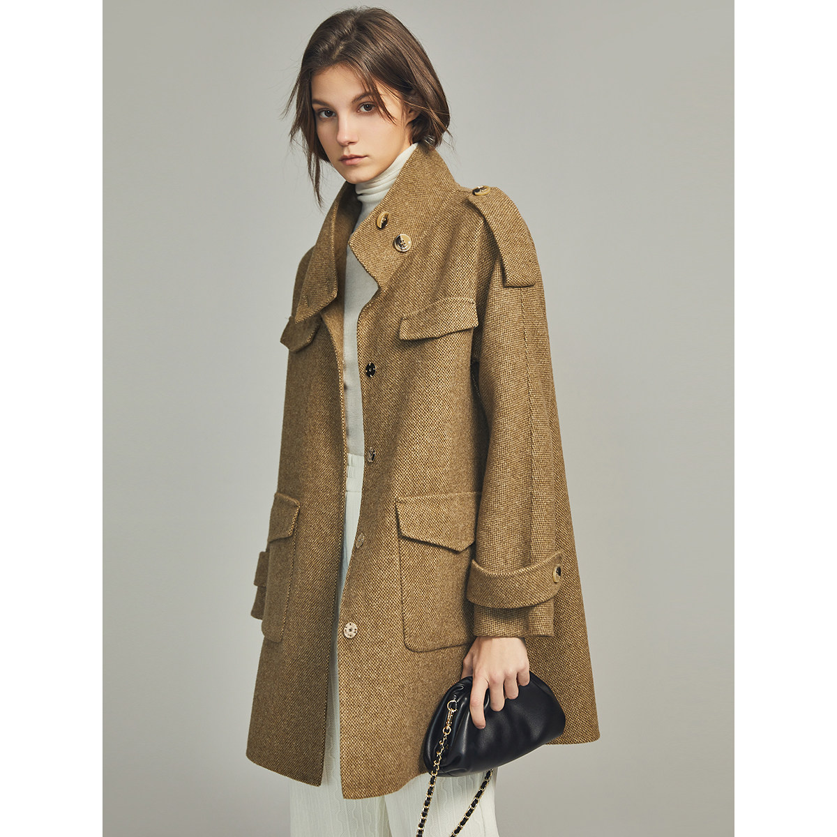 ELLE法式高端中长款毛呢外套女2025冬装新款小个子双面呢呢子大衣