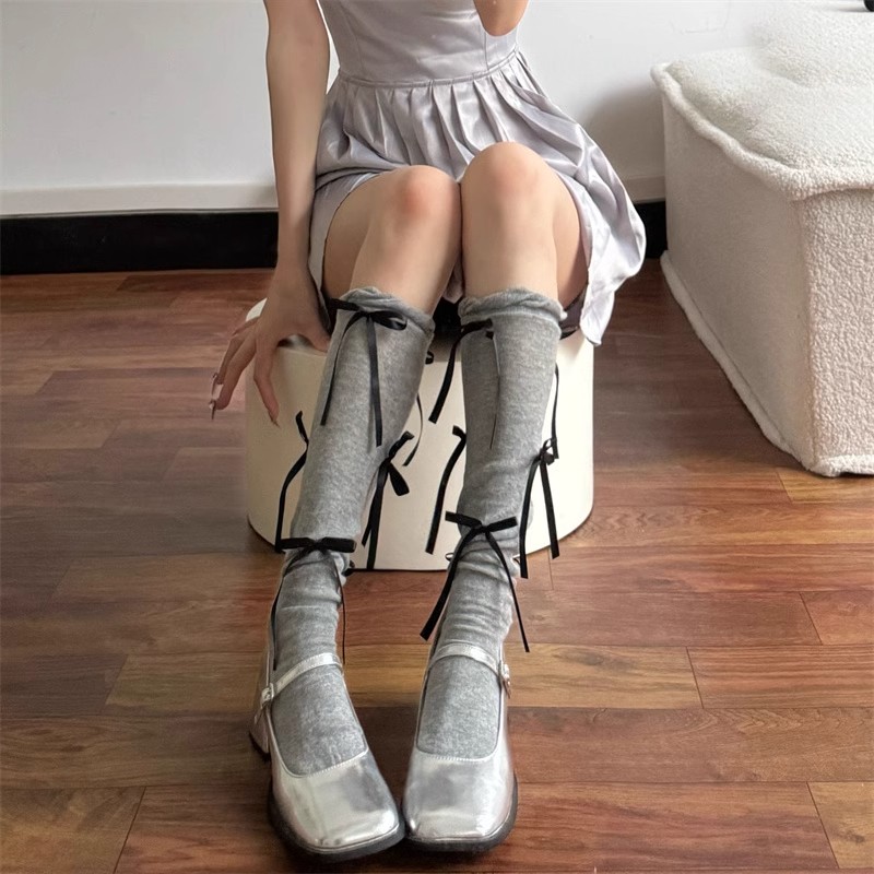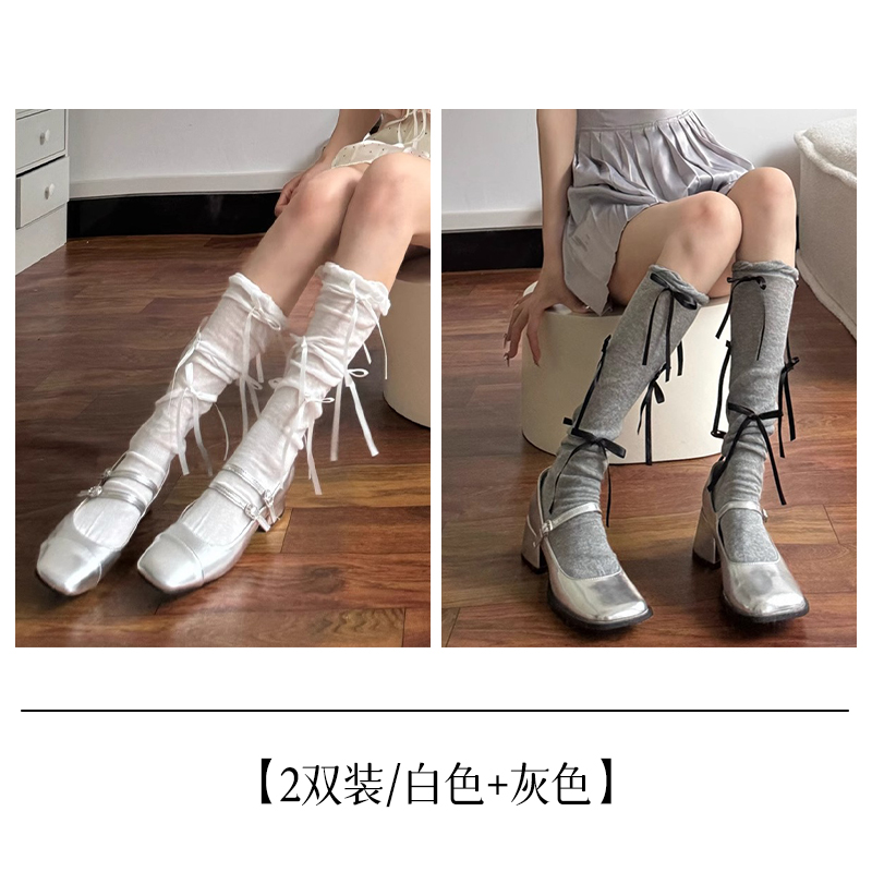 系带蝴蝶结芭蕾风小腿袜女夏季小众ins甜美及膝袜搭玛丽珍长筒袜