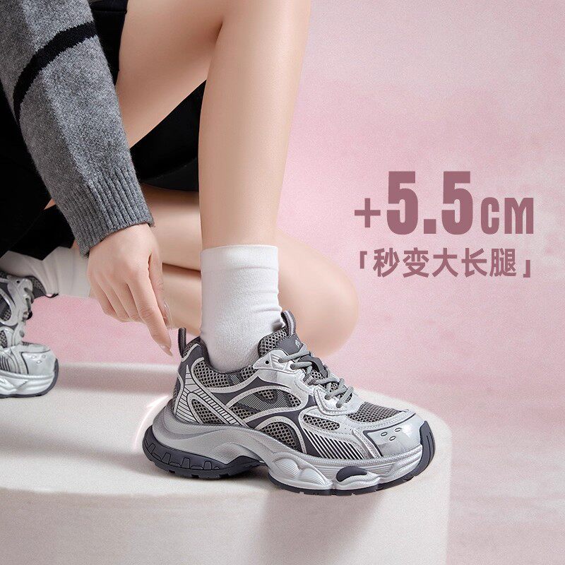 骆驼女鞋老爹鞋2026新款厚底增高复古休闲百搭女款银色运动鞋