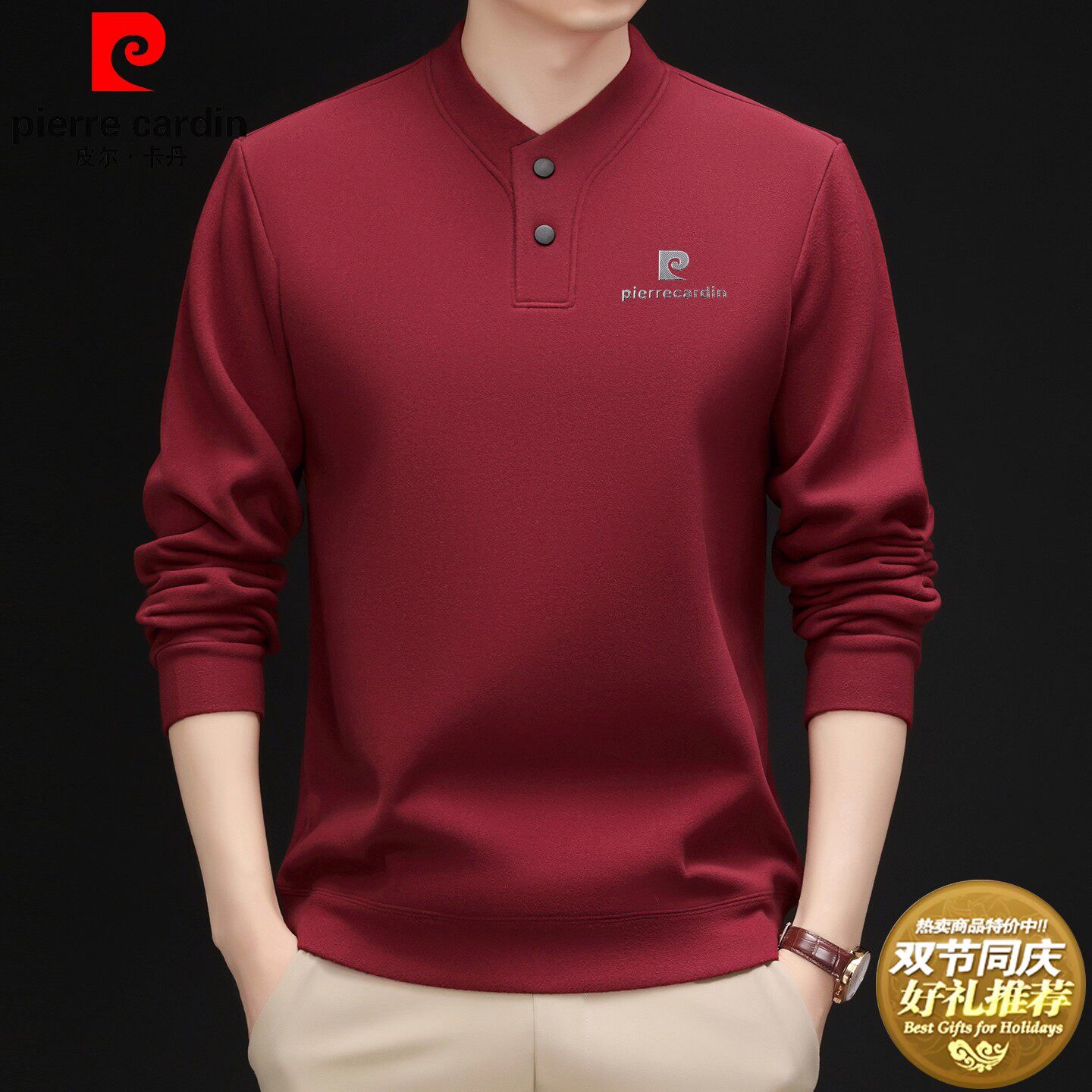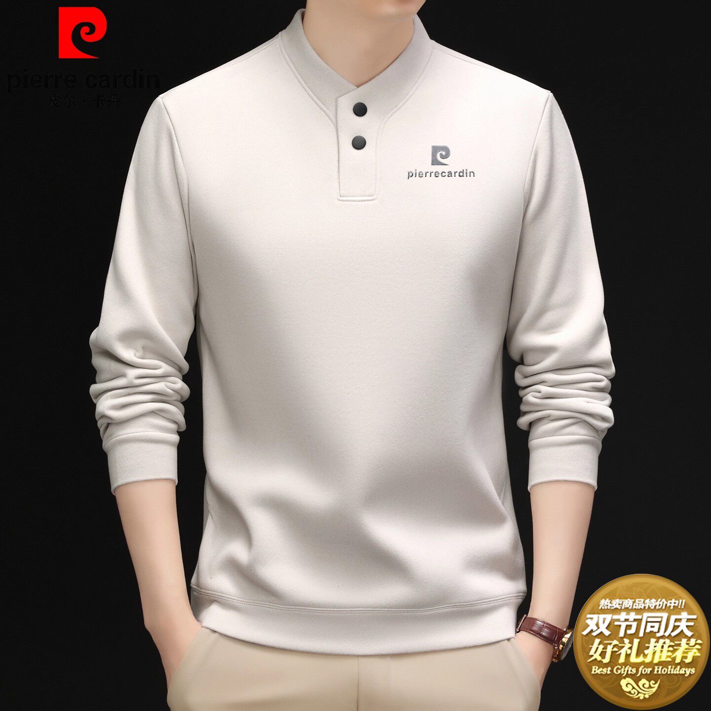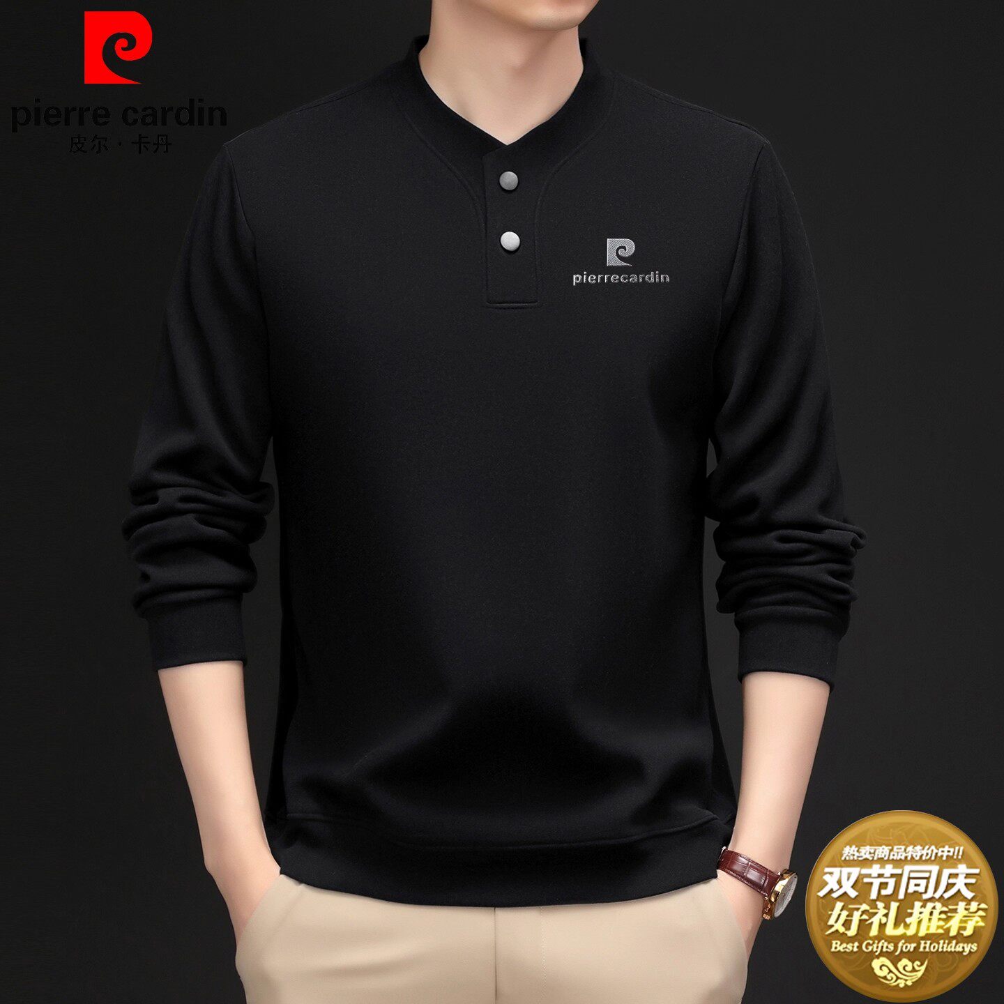 皮尔卡丹男士双面德绒卫衣打底衫