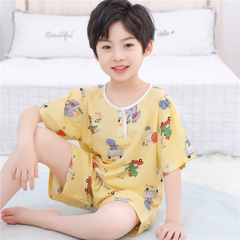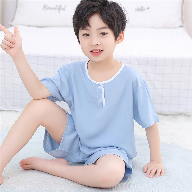 儿童短袖短裤棉绸睡衣套装夏季薄款空调服中大童女孩男宝宝家居服