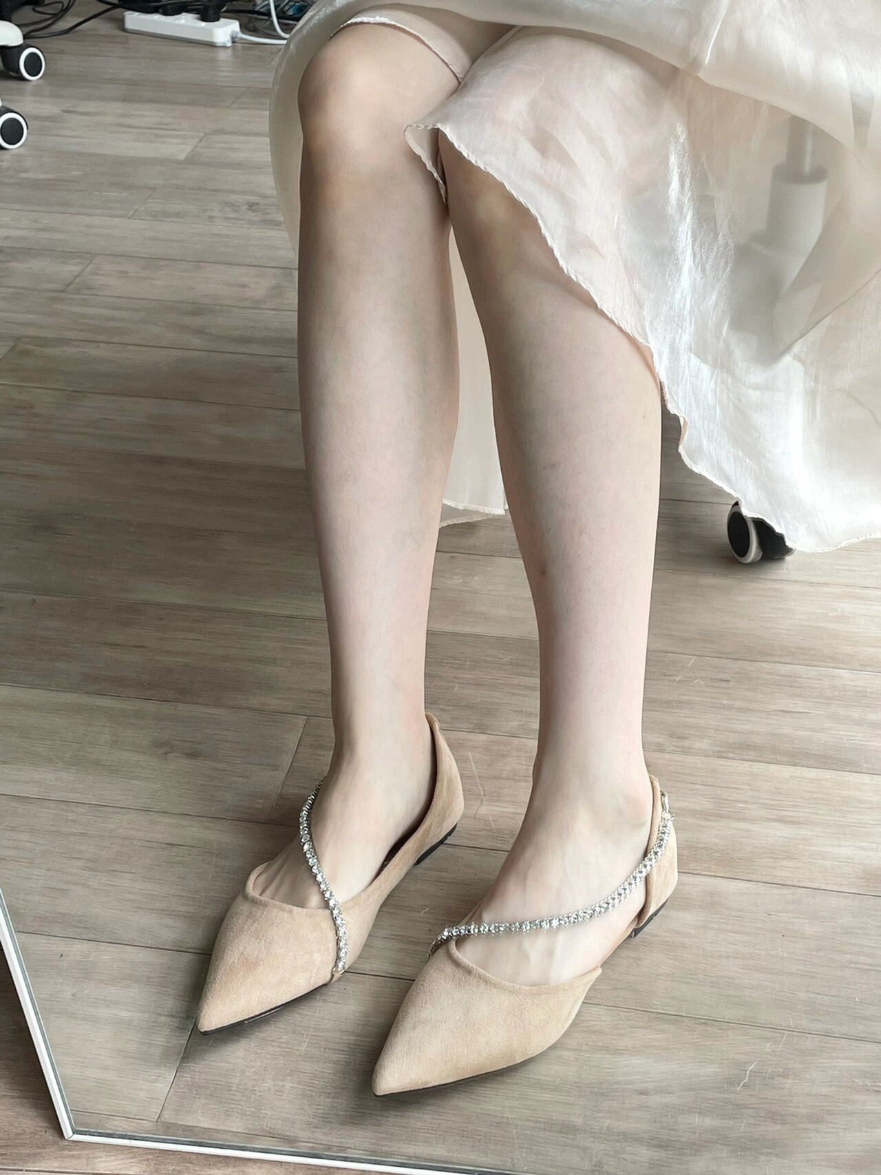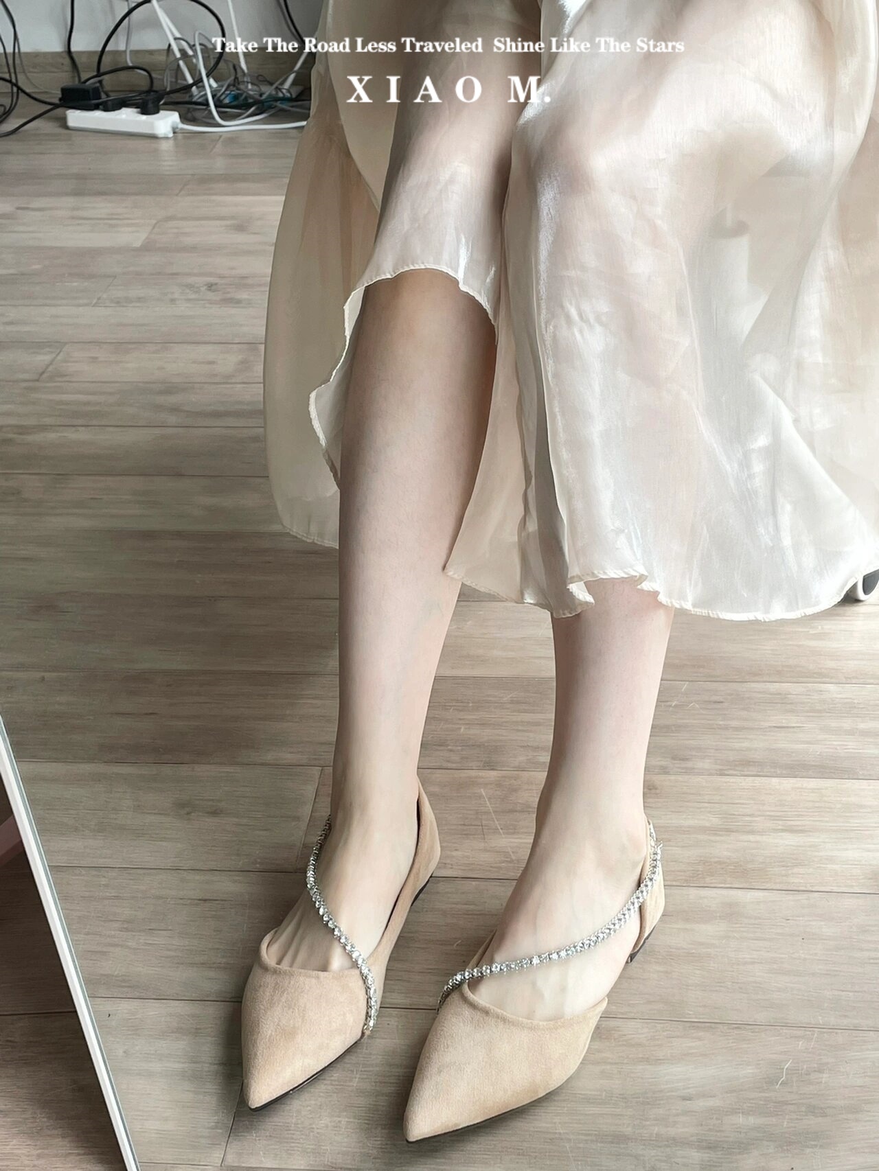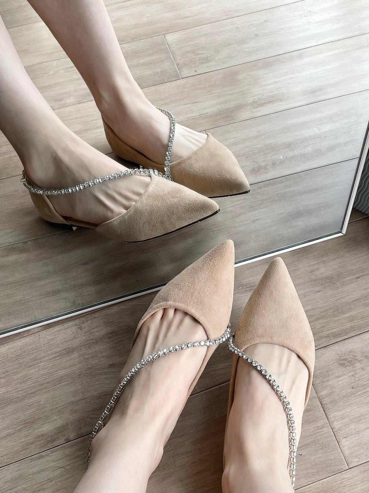 2024新款水钻链条尖头侧空性感低跟晚晚风浅口单鞋JC同款平底鞋女